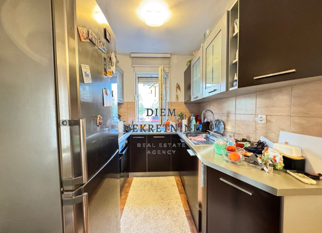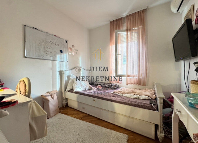 Prodaje se polunamješten, s obzirom na to da će trenutni vlasnik iznijeti namještaj iz dječije sobe, kao i frižider i mašinu.