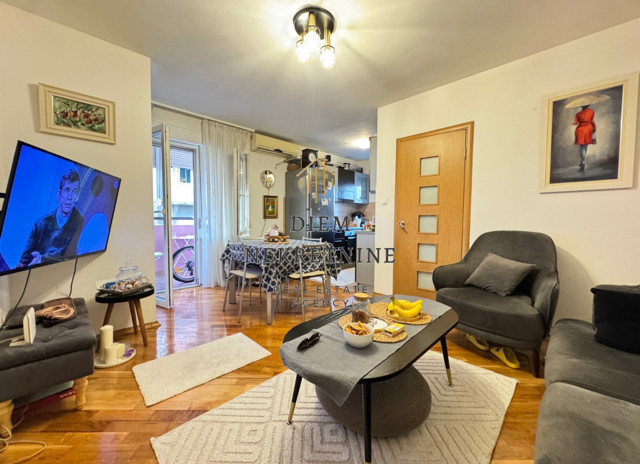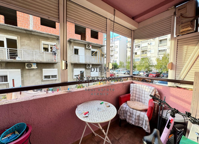 Opis: Na prodaju je namješten dvosoban stan u Bloku 9, površine 50 m². Nalazi se na visokom prizemlju manje stambene zgrade koja ne posjeduje lift. Stan se sastoji od ulaznog hodnika, dnevnog boravka sa kuhinjom i trpezarijom, dvije spavaće sobe, kupatila i terase.
