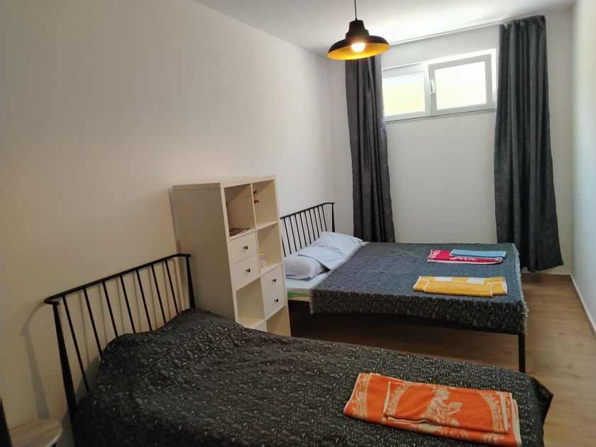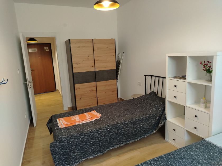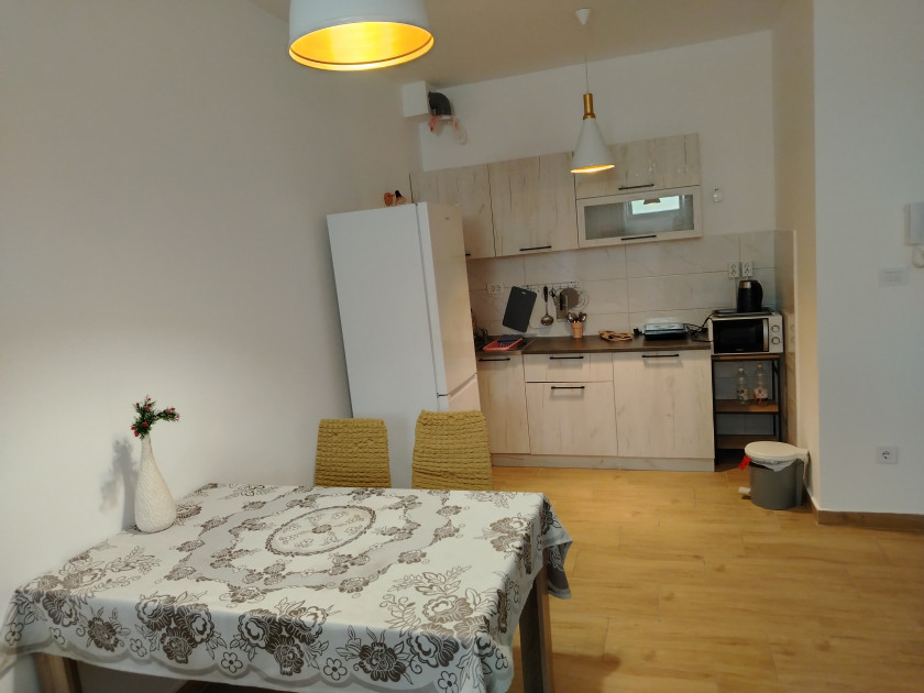 Jednosoban stan 49m², u suterenu, na 100m udaljeno od Big Fashion, prema rijeci Morači. Cijena je 85.000€.