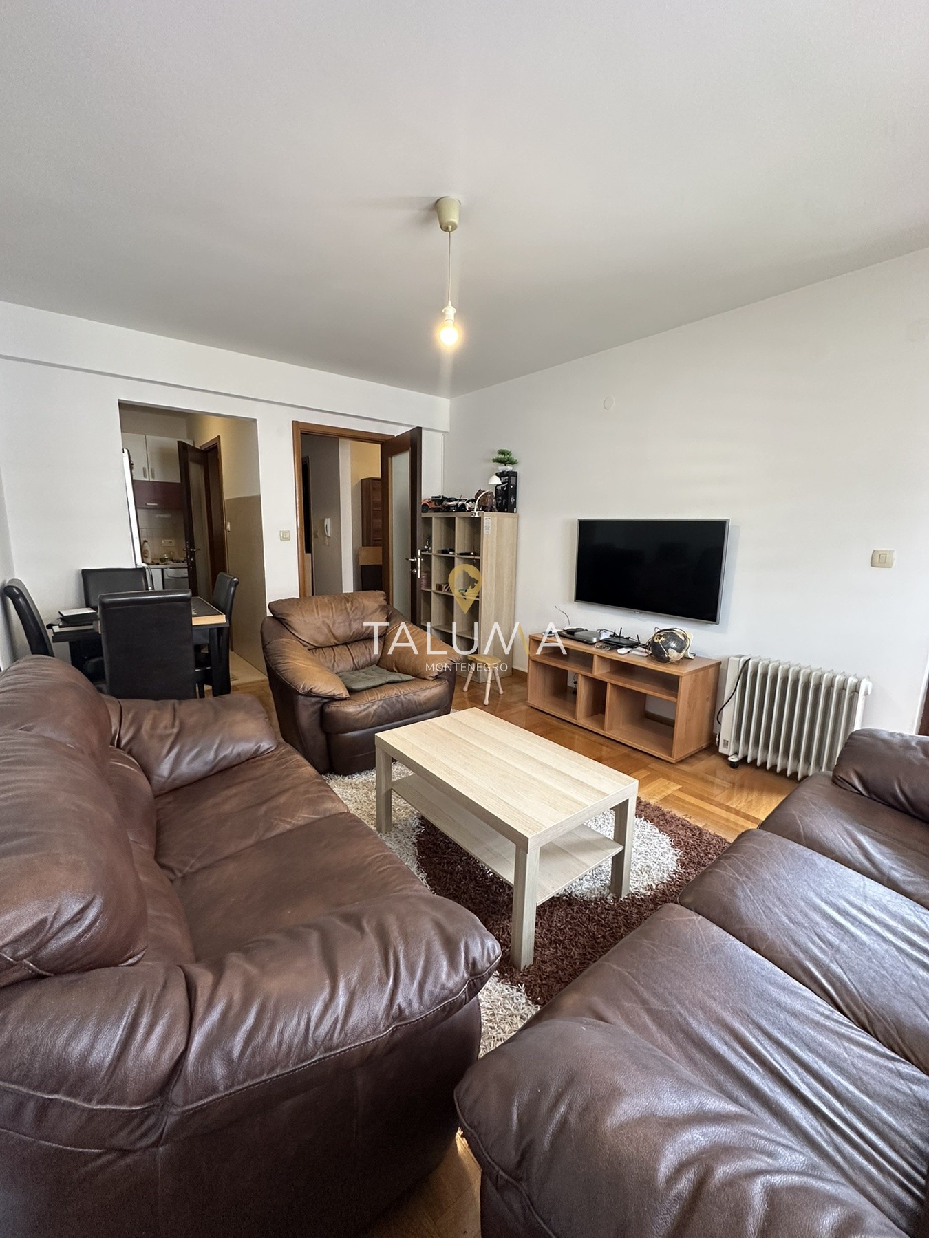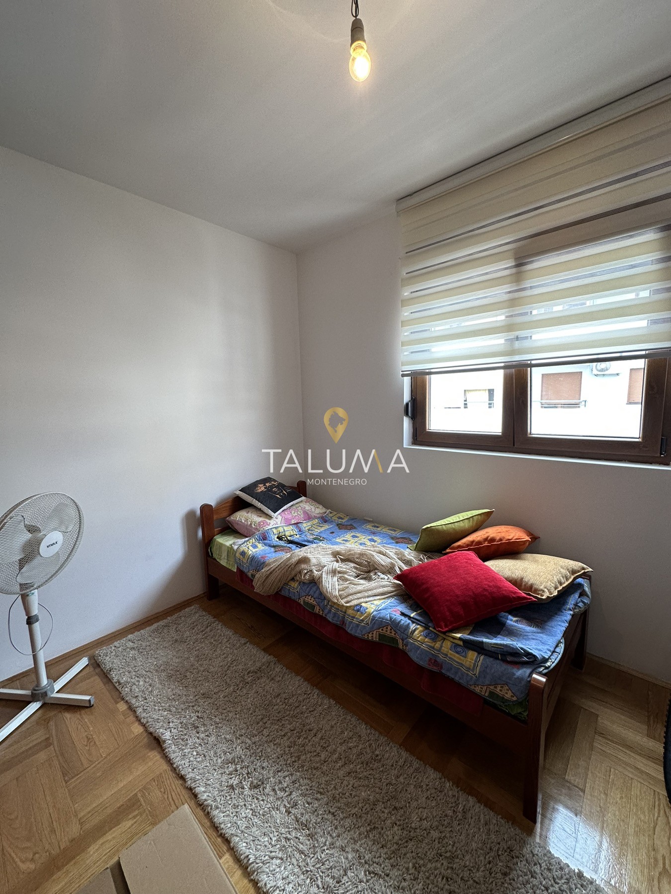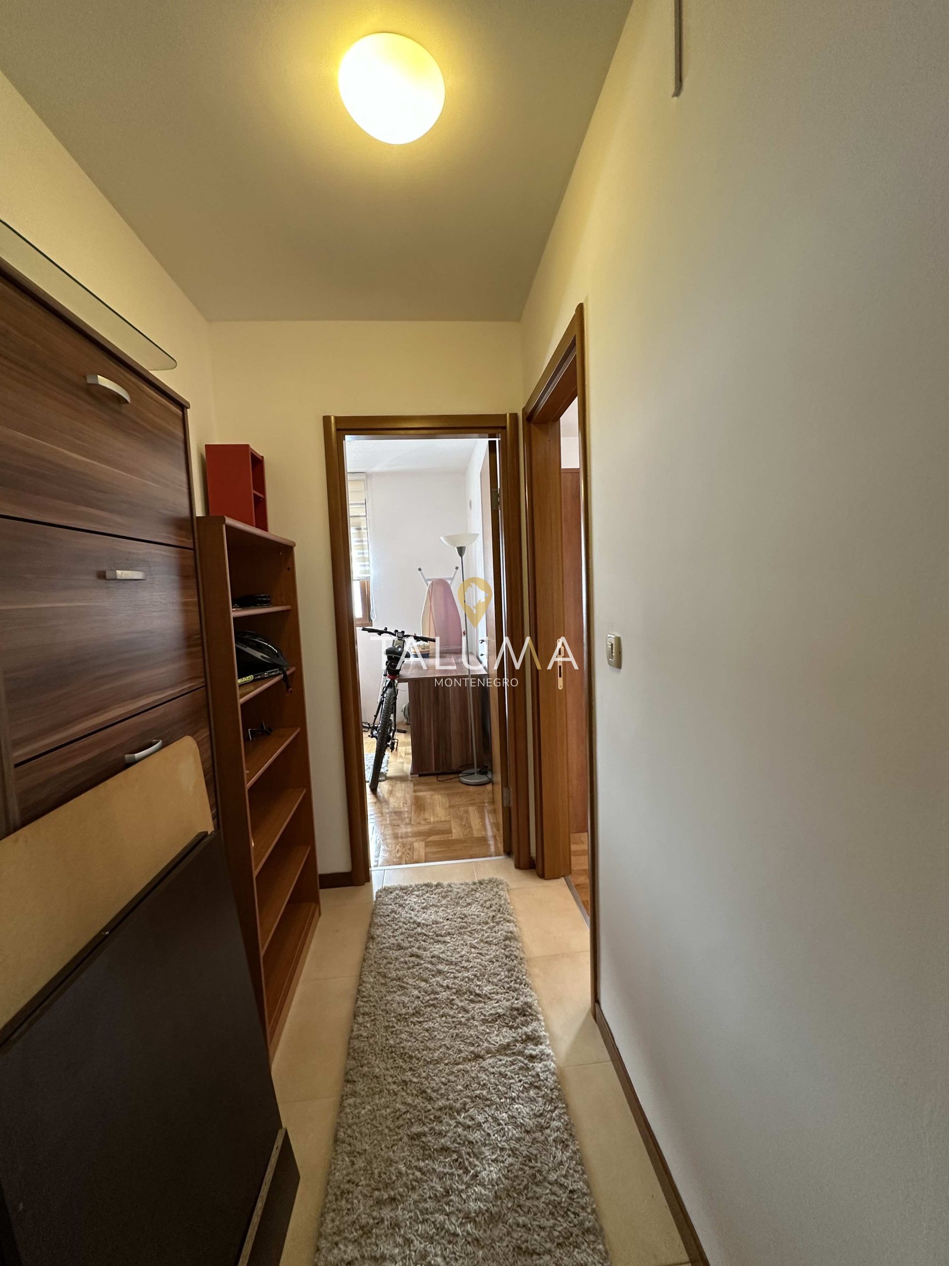 Struktura stana: ulazni hodnik, dnevni boravak, kuhinja, trpezarija, dvije spavaće sobe, toalet i dvije terase.