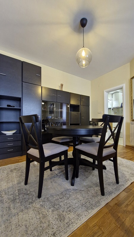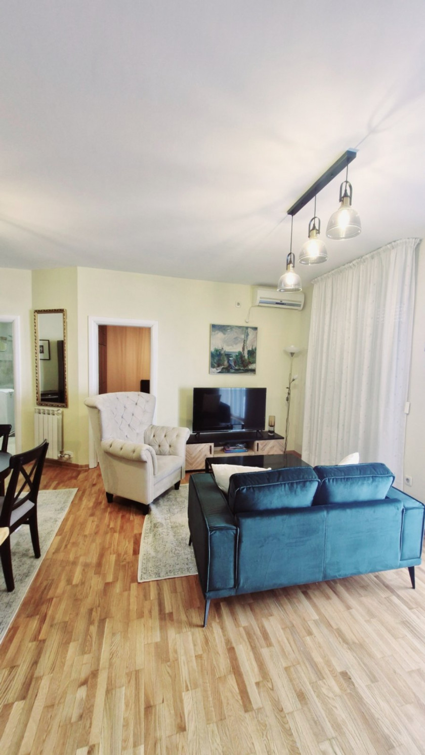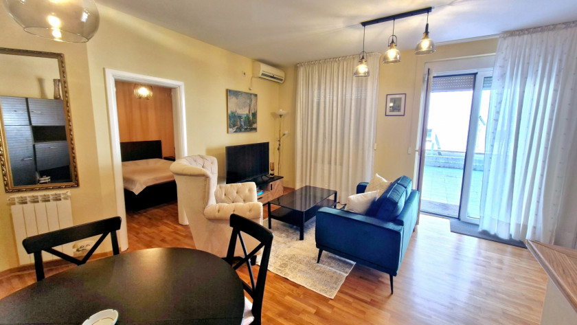 Stan je kompletno namešten u apartmanskom stilu, sa pažljivim izborom nameštaja i dekoracije, što pruža sofisticiran ambijent.