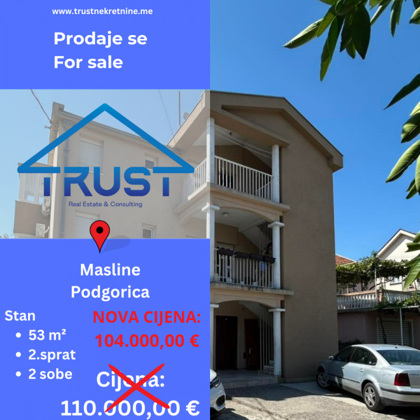Vrsta: Prodajem Stan-Apartman Područje: Podgorica Lokacija: Masline Cijena: €104.000 Spavaćih Soba: 2 Kupatila: 1 Stambena Površina: 53 m2 Klima Uređaj Čuvajte se prevara: NE vršite IBAN uplate