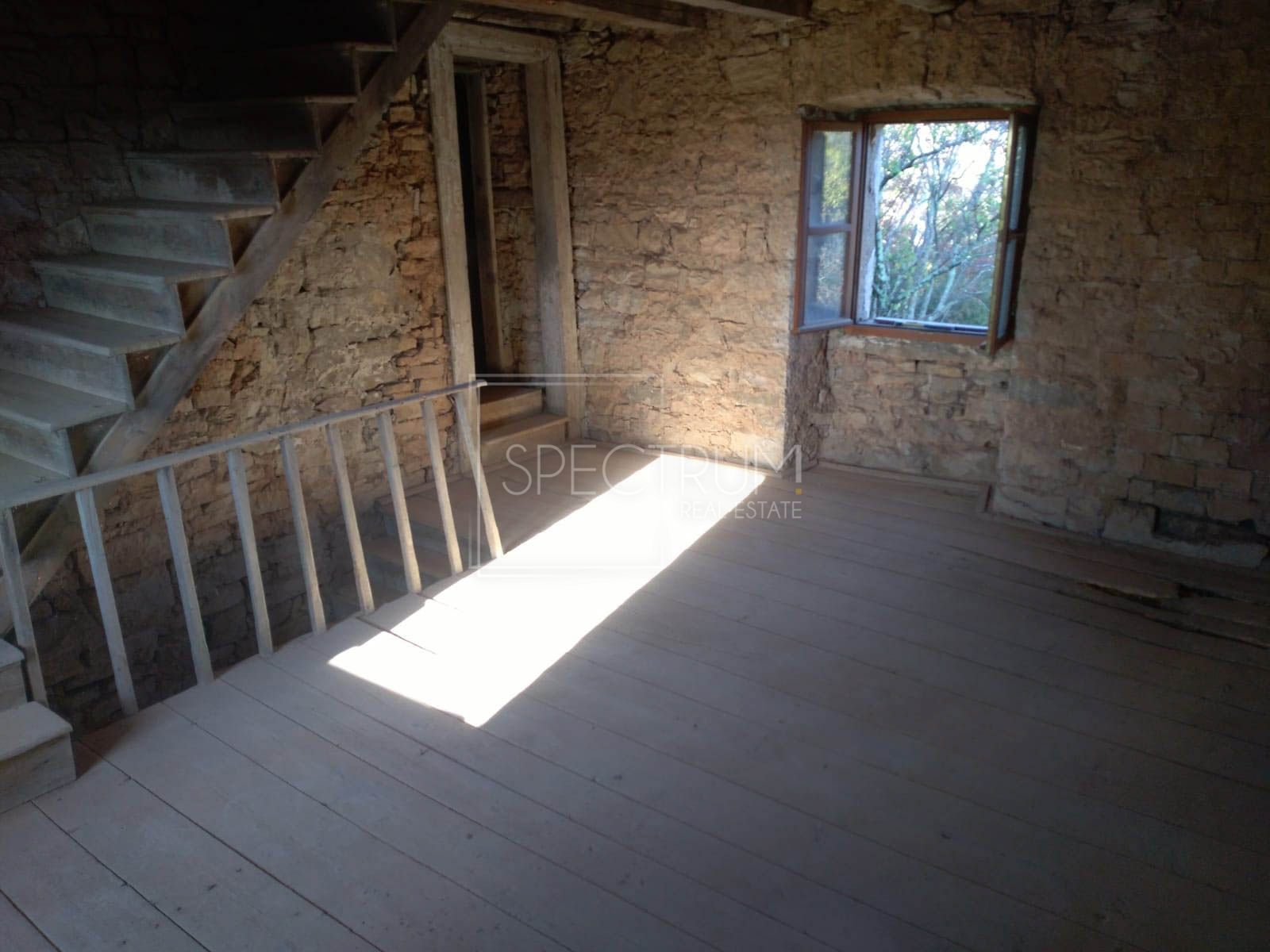 Radi se zapravo o 3 spojene kamene kuće koje zajedno čine jednu samostojeću cjelinu. Kuća se proteže kroz prizemlje, 1.kat i 2.kat. Površina ove tradicionalne istarske kuće iznosi 188 m2. Interijer kuće zahtijeva renovaciju i može se urediti ovisno o željama novog vlasnika. 2 od 3 spojene kuće imaju nedavno obnovljene zidove, stolariju i krov. Kuće su renovirane do roh bau faze. Treća kuća u nizu je ruševina koja zahtijeva kompletnu adaptaciju. Kuća ima priključak vode, a struja se nalazi na rubu parcele.