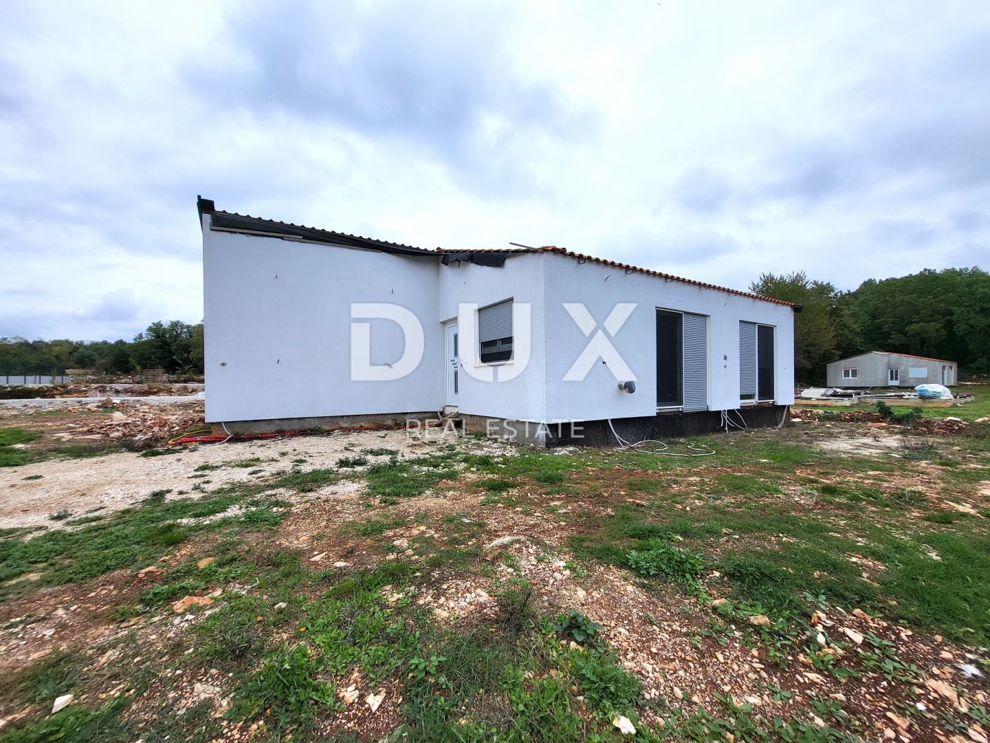 Nedaleko Tinjana, na prodaju je prizemnica površine 110m2 koja se sastoji od dnevnog boravka, blagovaonice, kuhinje, 3 spavaće sobe i 2 kupaonice. Iz dnevnog boravka i blagovaonice izlazi se direktno na natkrivenu terasu. Objekt je klimatiziran i opremljen podnim grijanjem.