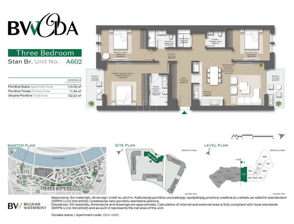 Opis: BW Oda se nalazi na prestižnoj lokacija između Bristol parka i Savskog trga, na korak od Sava Promenade, Terazija, Kalemegdana i Slavije. Stanovi nude terase, visoko zastakljenje i obilje prirodnog svetla; enterijeri sa višeslojnim parketom, a kupatila/kuhinje/balkoni obloženi granitnim pločicama.
