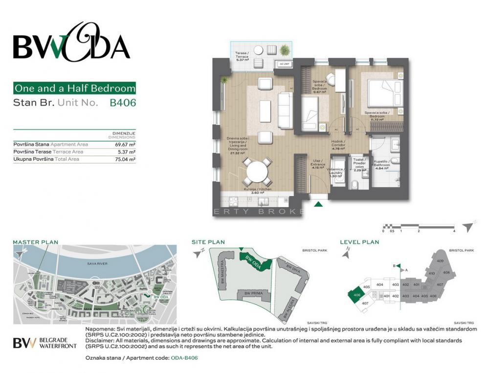 Opis: BW Oda se nalazi na prestižnoj lokacija između Bristol parka i Savskog trga, na korak od Sava Promenade, Terazija, Kalemegdana i Slavije. Stanovi nude terase, visoko zastakljenje i obilje prirodnog svetla; enterijeri sa višeslojnim parketom, a kupatila/kuhinje/balkoni obloženi granitnim pločicama.