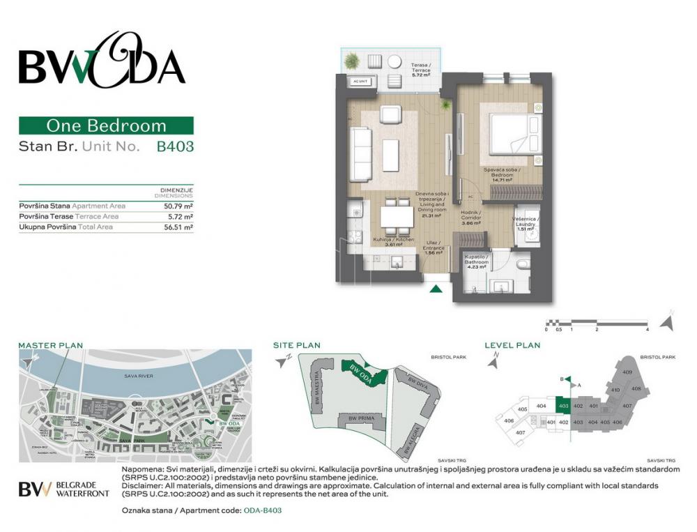Opis: BW Oda se nalazi na prestižnoj lokacija između Bristol parka i Savskog trga, na korak od Sava Promenade, Terazija, Kalemegdana i Slavije. Stanovi nude terase, visoko zastakljenje i obilje prirodnog svetla; enterijeri sa višeslojnim parketom, a kupatila/kuhinje/balkoni obloženi granitnim pločicama.