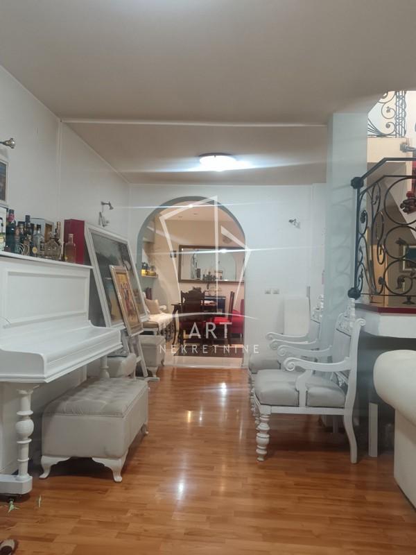 Opis: Smešten u veoma mirnoj ulici, prostor spaja udobnost i odličnu lokaciju — sve što vam treba je na dohvat ruke, ali bez gradske buke. Donji nivo stana se sastoji od udobnog, velikog i prostranog dnevnog boravka, trpezarijskog dela sa kuhinjom, spavacom sobom i kupatilom. Gornji nivo / potkrovlje – galerija, kao koncept idealan za čitaonicu, dečiju sobu, radni kutak ili kreativnu zonu.