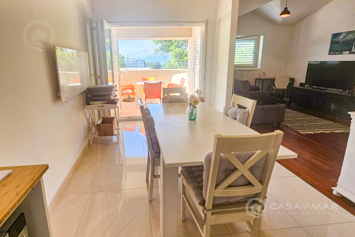 Prodaje se potpuno namješten i odmah useljiv. Zahvaljujući mirnoj lokaciji u blizini mora i centra, odličan je izbor kako za cjelogodišnje stanovanje, tako i za turistički najam.