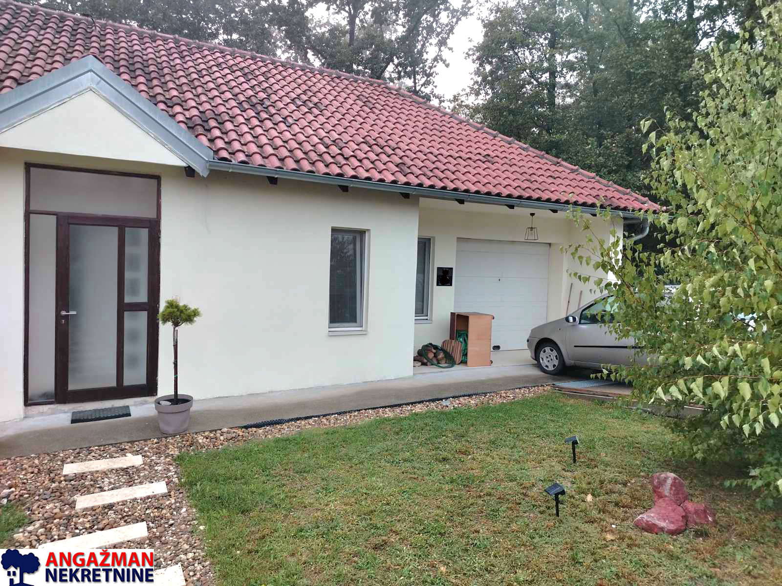 Prostorije: trem, hodnik, dnevna soba sa trpezarijom, kuhinja, kupatilo, spavaća soba sa svojim kupatilom, garderober, produženi dnevni boravak, terasa, garaža, dva parking mesta. Video nadzor, razvučena instalacija za alarm, razvučena instalacija za motor za kapiju.
