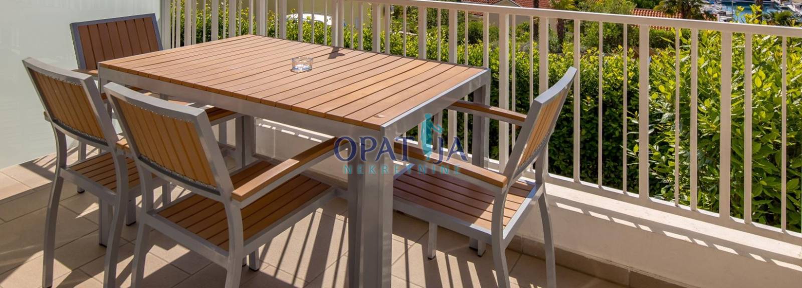 Opis: Iznajmljuje se moderan, luksuzno opremljen i namješten stan u višestambenoj zgradi s dizalom, na prekrasnoj lokaciji uz more u Ičićima pokraj Opatije. Stan se nalazi u visokom prizemlju i ima prostranu terasu s koje se pruža panoramski pogled na cijeli Kvarner. Sastoji se od ulaznog prostora s garderobom, spavaće sobe, dnevnog boravka s blagovaonicom i kuhinjom te kupaonice. Grijanje i hlađenje osigurano je dizalicom topline, a ventilacija s rekuperacijom zraka dodatno doprinosi udobnosti. Osigurano je jedno parkirno mjesto uz zgradu, pod videonadzorom. Režije se plaćaju posebno. Stan je idealan za one koji traže mir, udobnost i luksuz u neposrednoj blizini mora. Za više informacija i dogovor oko razgledavanja, kontaktirati licenciranu agenticu Gordanu Rabak 0923845410 ili003845410, gordana@opatijanekretnine.info