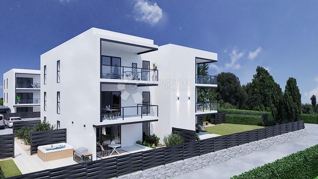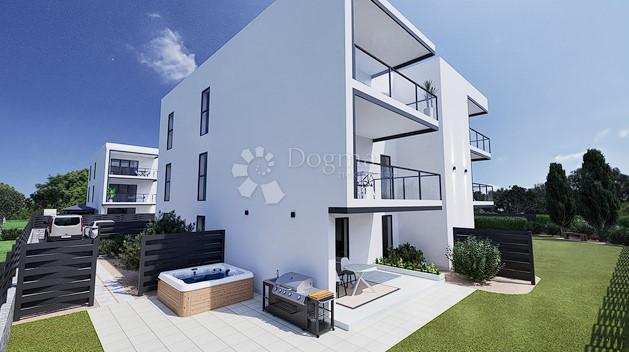 Stanovi se nalaze na svega sedamsto metara od mora, što pruža savršen spoj mirnog stambenog okruženja i neposredne blizine plaža, restorana i sadržaja koje nudi obalni život. Svi stanovi su dvosobni, skladno raspoređeni i prostrani. Sastoje se od dnevnog boravka povezanog s kuhinjom i blagovaonicom, dviju spavaćih soba, kupaonice te balkona ili terase....