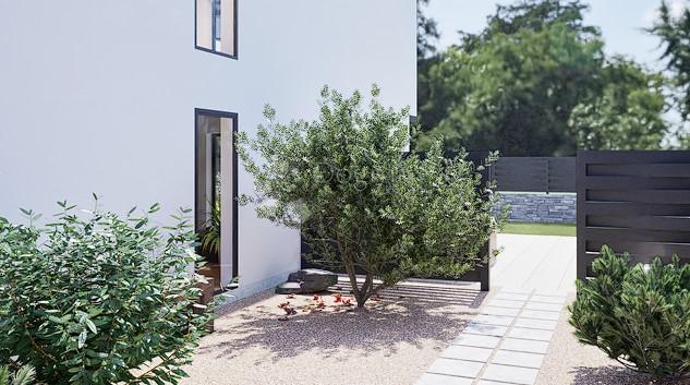 Arhitektura je pročišćenih linija i modernog izričaja, dok su u gradnji korišteni održivi materijali i energetski učinkovita rješenja. Poseban naglasak stavljen je na mogućnost ugradnje pametnih kućnih sustava i solarnih panela, što budućim vlasnicima omogućuje višu razinu komfora, praktičnosti i uštede energije.
