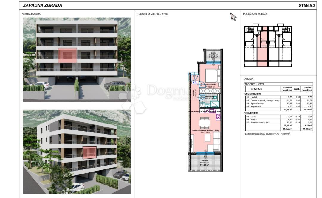 Opis: Na prodaju jednosoban stan u prekrasnom novom kompleksu u zapadnom dijelu grada Makarske!