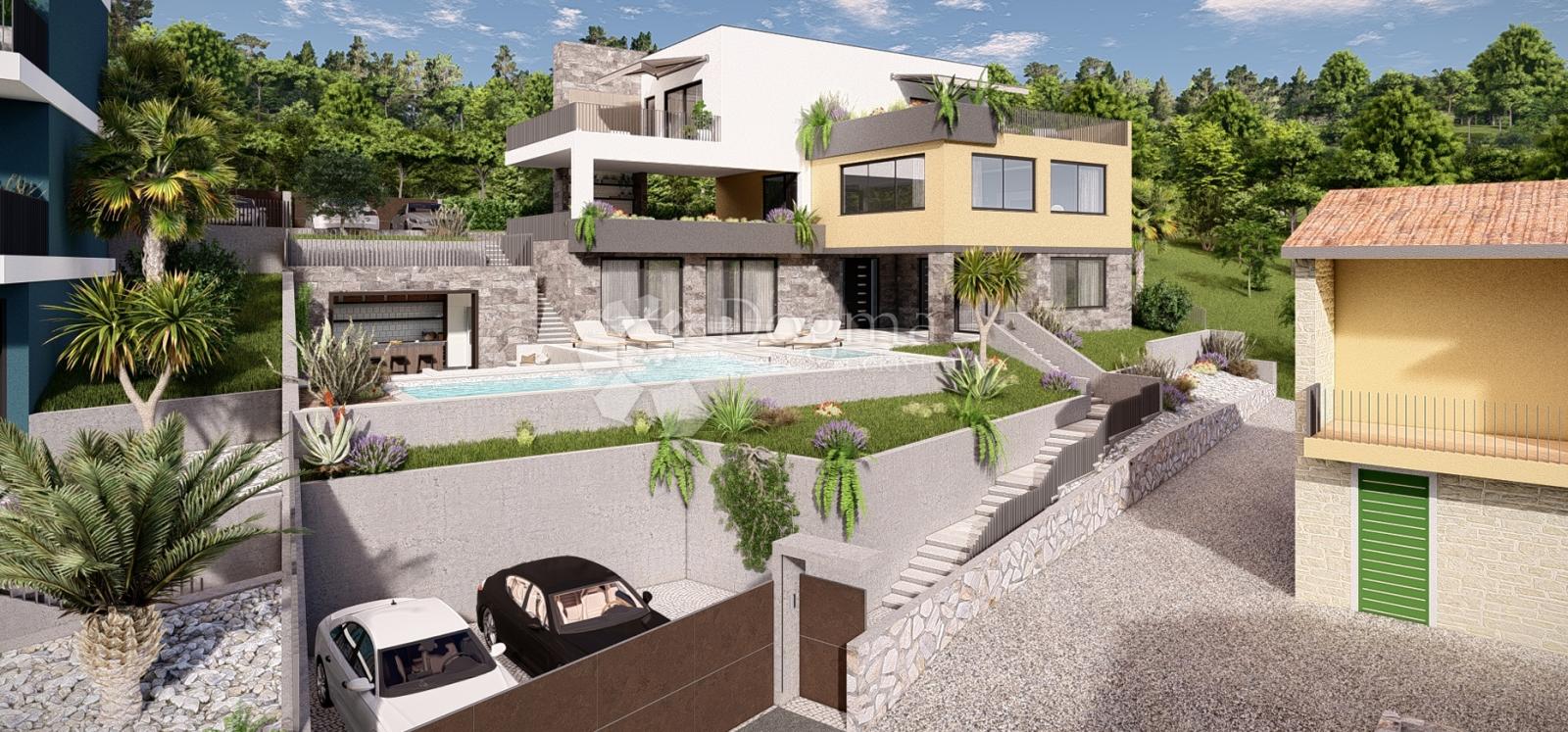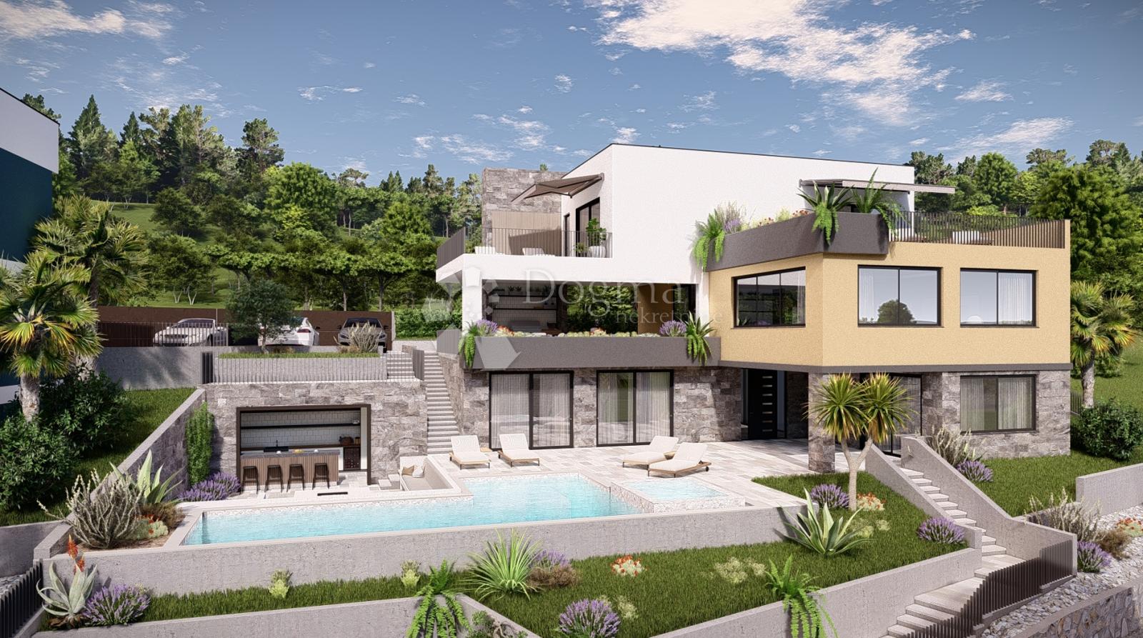 Prvi kat: raskošno dizajniran dnevni boravak s kuhinjom i blagovaonicom ukupne površine 100 m², s izlazom na natkrivenu terasu od 60 m² s predivnim panoramskim pogledom.