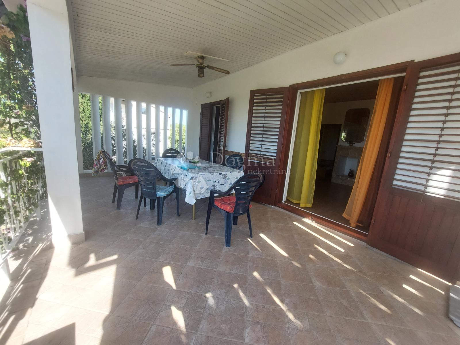 Na prodaju samostojeća kuća s dva odvojena stana, smještena na mirnoj lokaciji, samo 150 metara od mora! Ova nekretnina je savršena prilika za odmor, turizam ili kao obiteljska kuća s dodatnim stambenim prostorom.