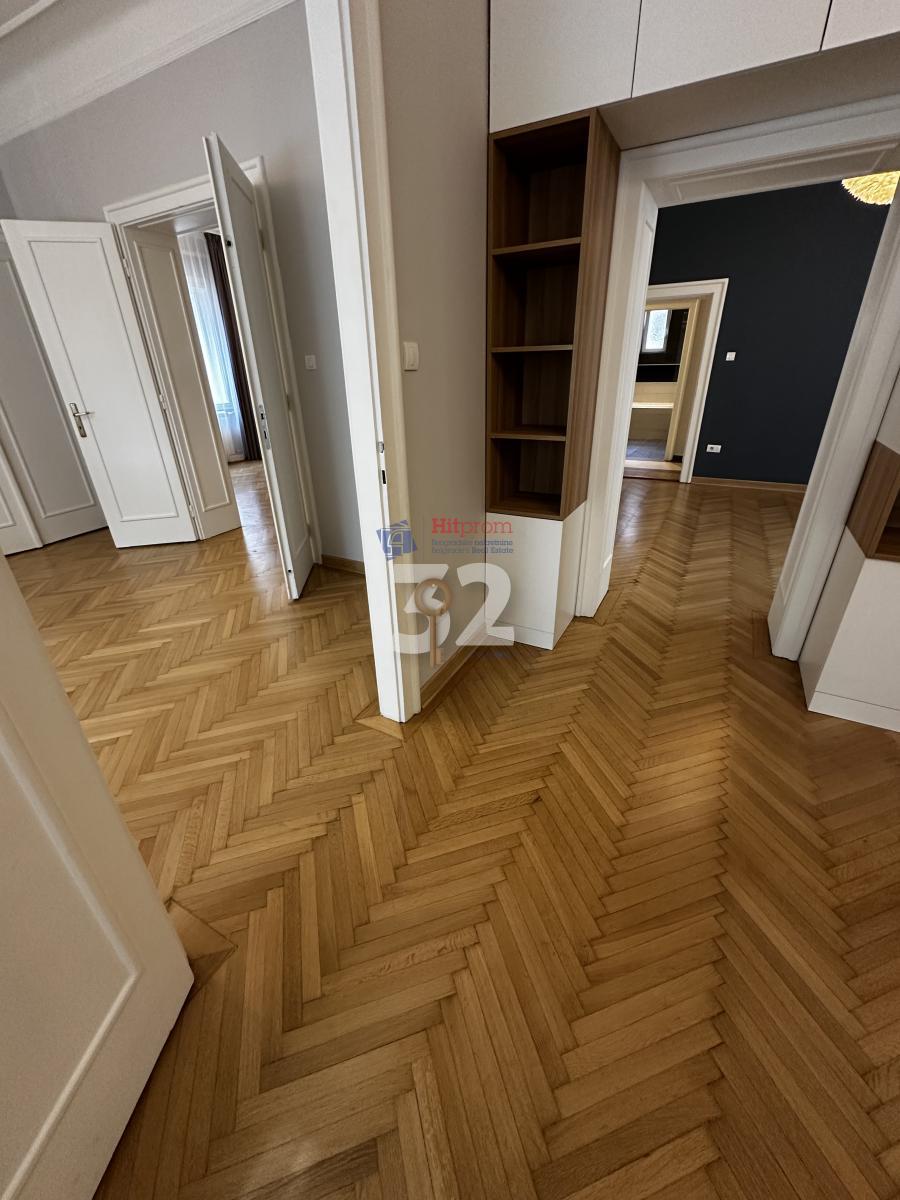 Prelep stan salonskog tipa u privatnoj kući, u tihoj ulici, u blizini svih sadržaja. Renoviran, polunamešten, reprezentativan., ima ulazni hol, dnevnu sobu , trpezariju/radnu sobu, dve spavaće sobe, kuhinju i toalet. U spavaćim sobama ima plakara. Postojeći komadi nameštaja mogu se izneti-prema potrebi. grejanje je na toplotnu pumpu, ima i dva klima uređaja. Sve sobe su po 20 mkv. Pogodan za poslovnu osobu, stranu porodicu, i za zakup na duži rok. Parkiranje ispred kuće. Plaćanje mesečno, depozit, agencijska provizija u skladu sa uslovima poslovanja