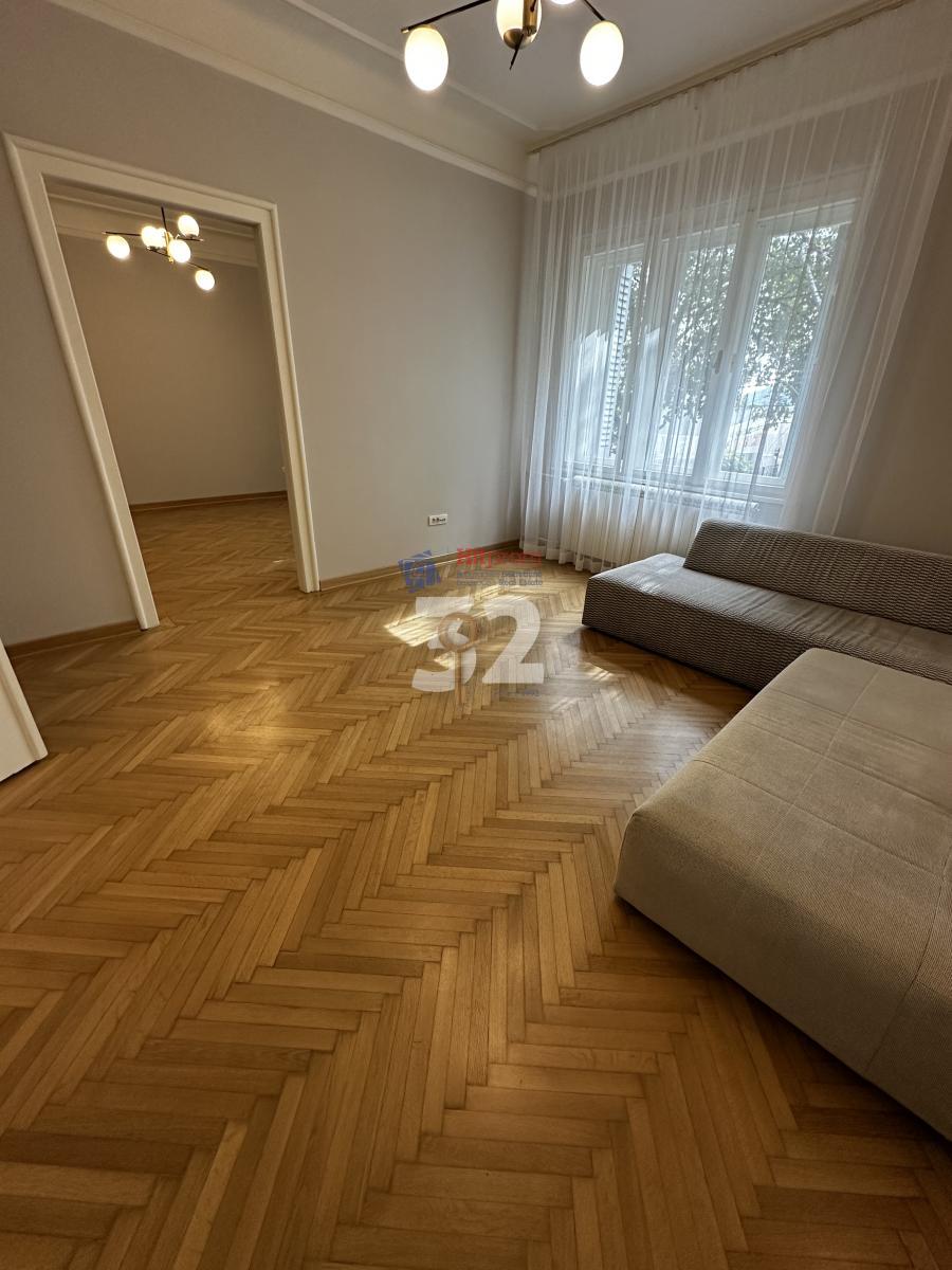 Opis: Charming salon-type apartment in a private house, in a quiet street, close to all facilities. Renovated, semi-furnished, representative. It has an entrance hall, living room, dining room/study, two bedrooms, kitchen and toilet. There are closets in the bedrooms. Existing pieces of furniture can be brought out - as needed. heating is by heat pump, there are also two air conditioners. All rooms are 20 mkv each. Suitable for a business person, embassy, a foreign family, and for long-term rental. Parking in front of the house.
