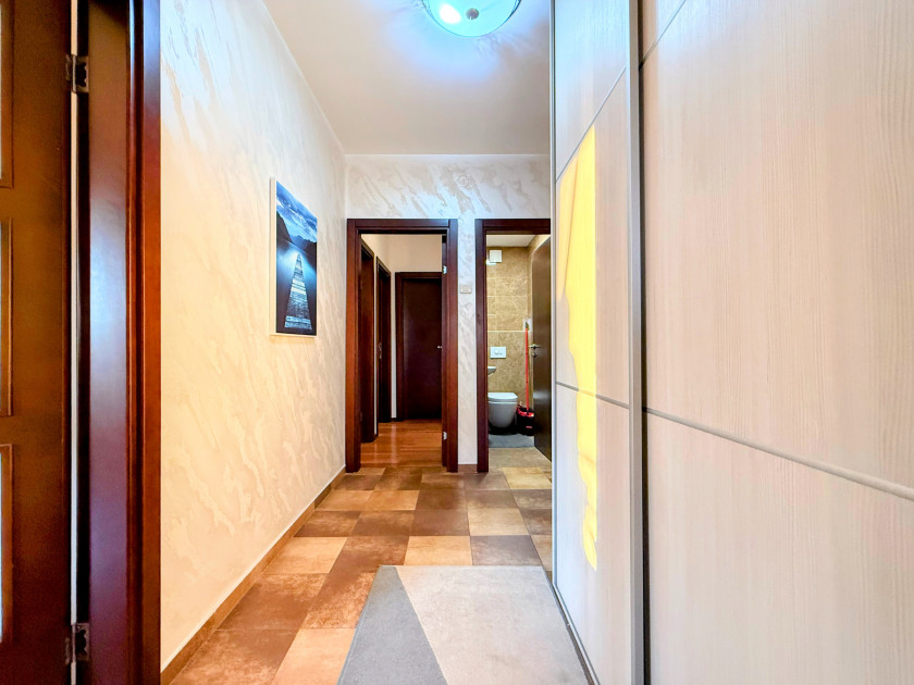 Stan je jugo-zapadne orijentacije, prozračan je i prostran. Sastoji se od ulaznog hola, dnevnog boravka sa trpezarijom, odvojene kuhinje, dvije spavaće sobe, kupatila, gostinskog toaleta i terase sa koje se pruža nesmetan pogled na zalaske sunca.