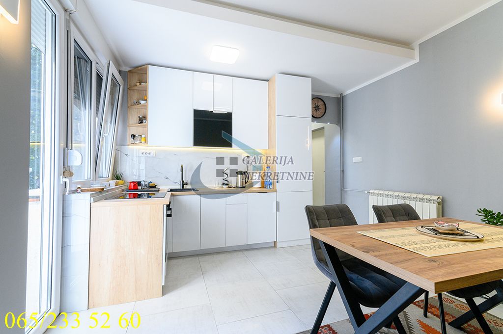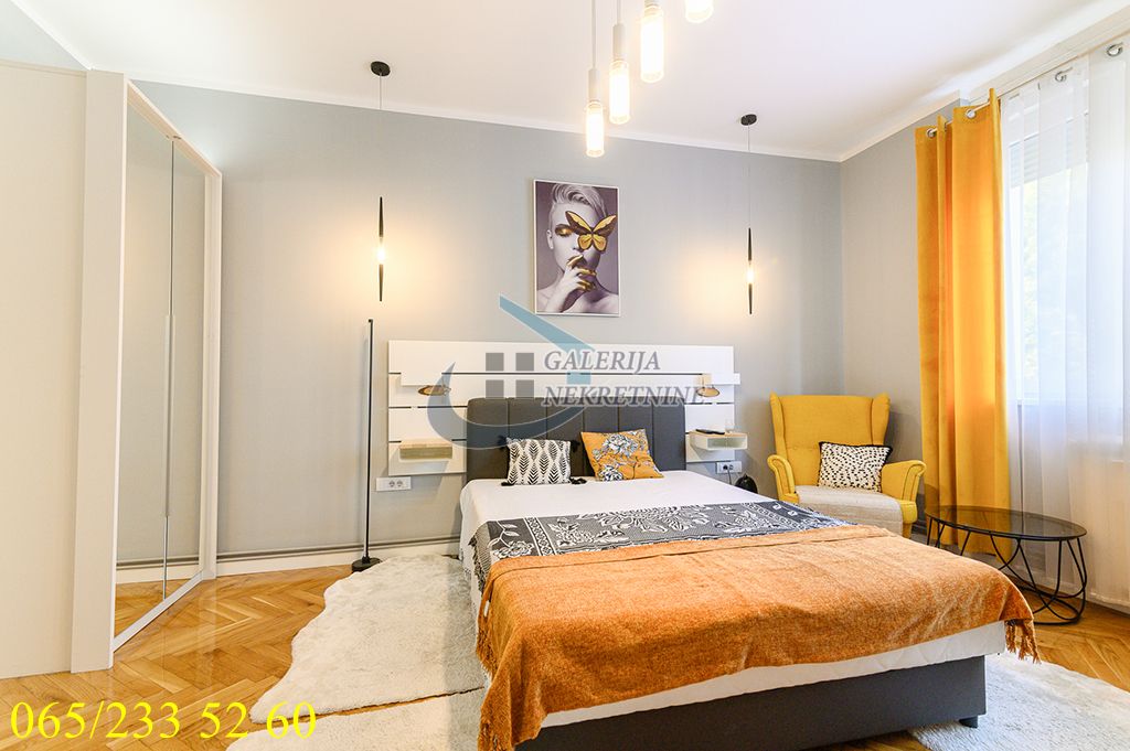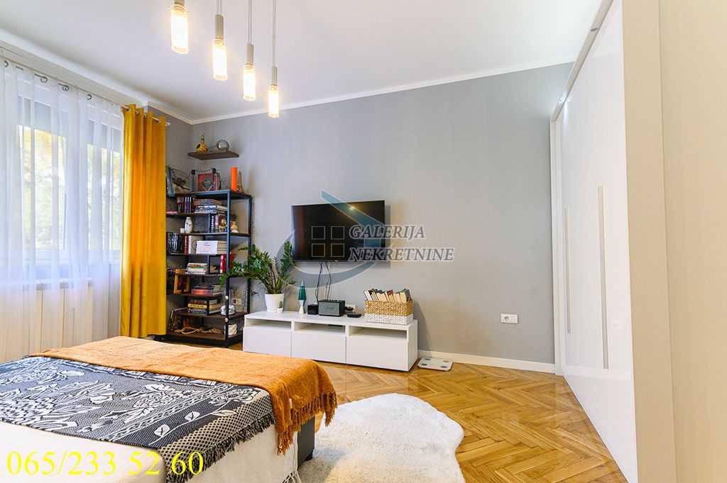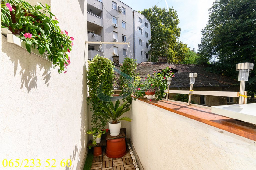 U prilici smo da Vam ponudimo izuzetan jednoiposoban stan na prvom spratu dobro očuvane i održavane šestospratne zgrade, sa liftom, građene početkom šezdesetih godina. Sam stan je vrlo konforan, prostorije su dobrih veličina i funkcionalno raspoređene, visine plafona 2.90m, dvostrano je orijentisan (istok-zapad), svetao i sunčan. Kompletno i temeljno renoviran izuzetno kvalitetnim materijalima, moderno dizajniran, potpuno i sa ukusom namešten. Iz centralno pozicioniranog hodnika se ulazi u sve prostorije (svaka ima prirodnu ventilaciju). U skladu sa trendovima dnevni boravak je objedinjen sa kuhinjom i trpezarijskim delom. Iz dnevnog dela, koji je orijentisan ka dvorišnoj strani, izlazi se na manju terasu pogleda na veliko dvorište prepuno zelenila, u koje mogu ući samo stanari. Grejanje je centralno a stan ima i pripadajući podrum.