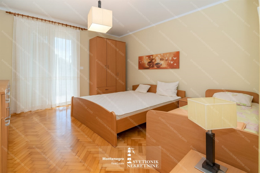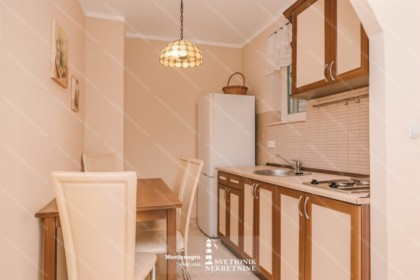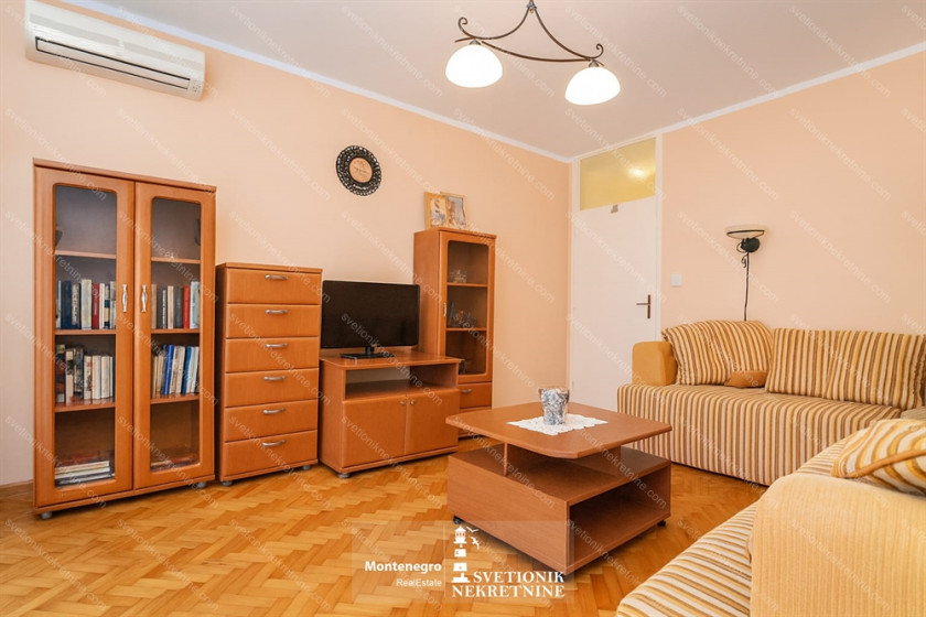 Opis: Savina, Herceg Novi – Jednosoban stan 49m² sa terasom oko 10m², prvi sprat, južno orijentisan i svetao. Raspored: dnevna soba, kuhinja sa trpezarijom, spavaća soba, kupatilo i terasa. Udaljen samo 50m od mora i šetališta.
