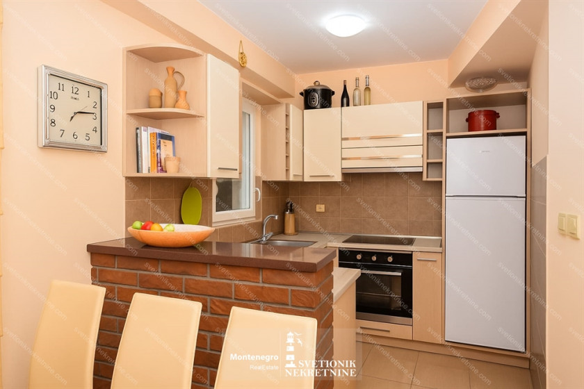 Opis: Centar, Herceg Novi – Jednosoban namešten stan 60m² sa privatnim dvorištem 30m², udaljen 80m od mora i šetališta Pet Danica. Nalazi se u prizemlju, ima garažno mesto, ustakljenu terasu, dnevni boravak sa kuhinjom, spavaću sobu i kupatilo. Pogodan za život ili izdavanje.