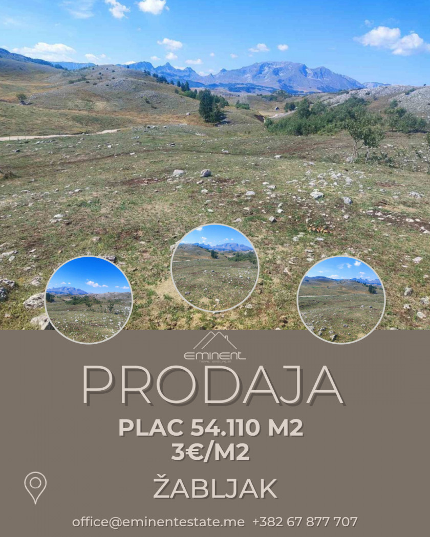 Na prodaju plac površine 54.100 m², smješten pored puta, na udaljenosti od 14 km od centra Žabljaka. Put prolazi uz plac i redovno se čisti od snijega tokom zime.