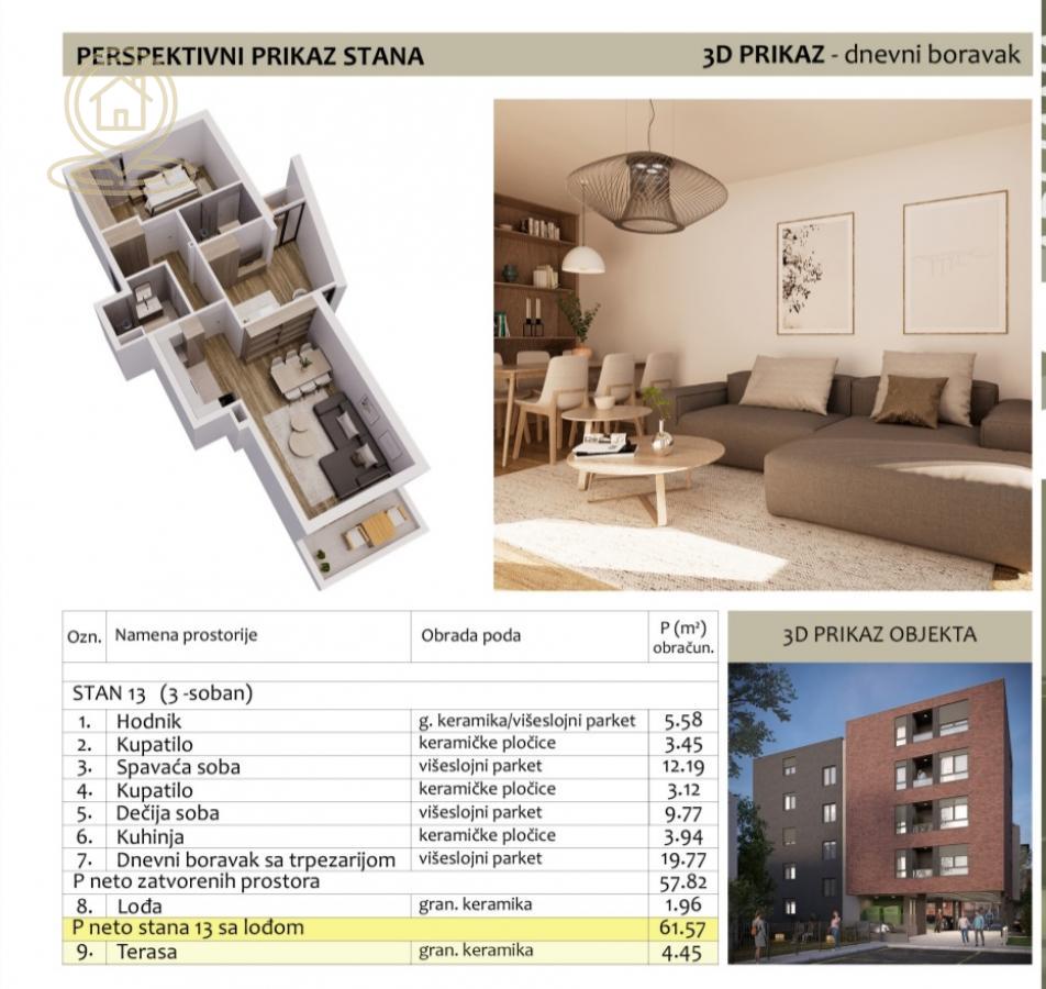 Opis: Na prodaju trosoban stan u novogradnji, dostupan na 4. spratu zgrade sa liftom na idealnoj lokaciji u Duvanistu.