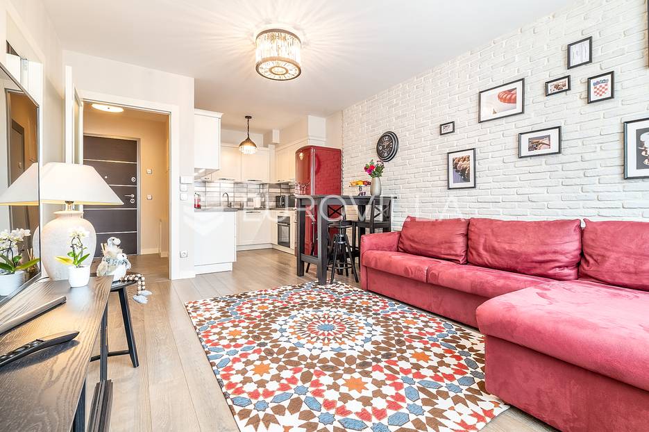 Opis: Zagreb, Sigečica, predivan i kompletno namješten dvosoban stan, NKP 52 m2 na petom katu kvalitetne zgrade novije gradnje.Sastoji se od: ulaznog predsoblja, kupaonice s talijanskom keramikom te podnim grijanjem, open space dnevnog boravka s blagovaonicom i kuhinjom po mjeri brenda Arex, spavaćeZa ovu nekretninu kontaktirajte agenticu na broj telefona +385 99 626 9535.Više na Eurovilla.hr, ID: 704158Direktan link: https://eurovilla.hr/nekretnina/zagreb-blizina-radnicke-moderan-dvosoban-stan-s-garazom-nkp-52m2/704158/