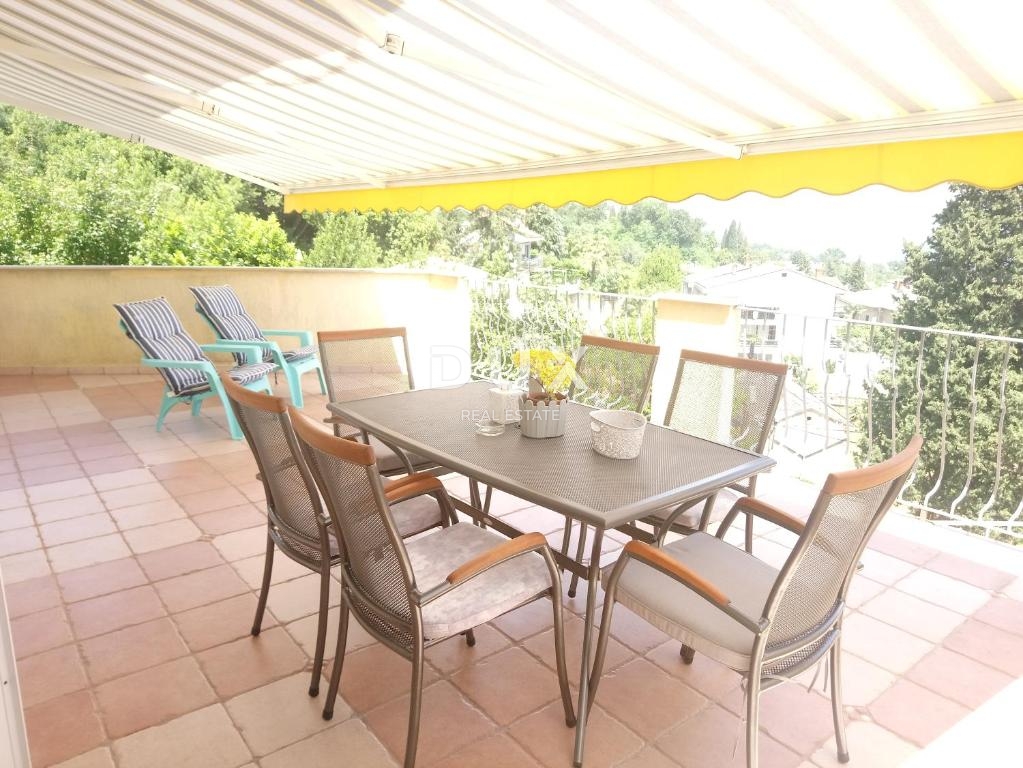 Iznajmljuje se ekskluzivan stan u centru Opatije površine 75 m² s dodatnom velikom terasom od 30 m², smješten u visokom prizemlju s prekrasnim otvorenim pogledom na more i cijeli Kvarnerski zaljev.