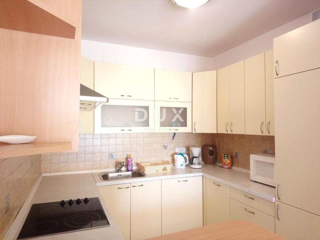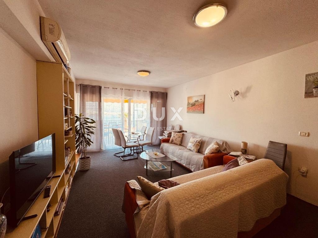 Stan je lijepo uređen i potpuno namješten, a sastoji se od prostrane dnevne sobe povezane s kuhinjom i blagovaonicom, hodnika, dvije spavaće sobe te kupaonice i dodatnog malog wc-a. Posebna vrijednost ovog stana je velika terasa s koje se pruža impresivan pogled na Kvarnerski zaljev. Prekrasne klizne stijene osiguravaju obilje svjetlosti i ugođaj mediteranskog načina života. Južno orijentirana spavaća soba također nudi pogled na more i direktan izlaz na terasu.