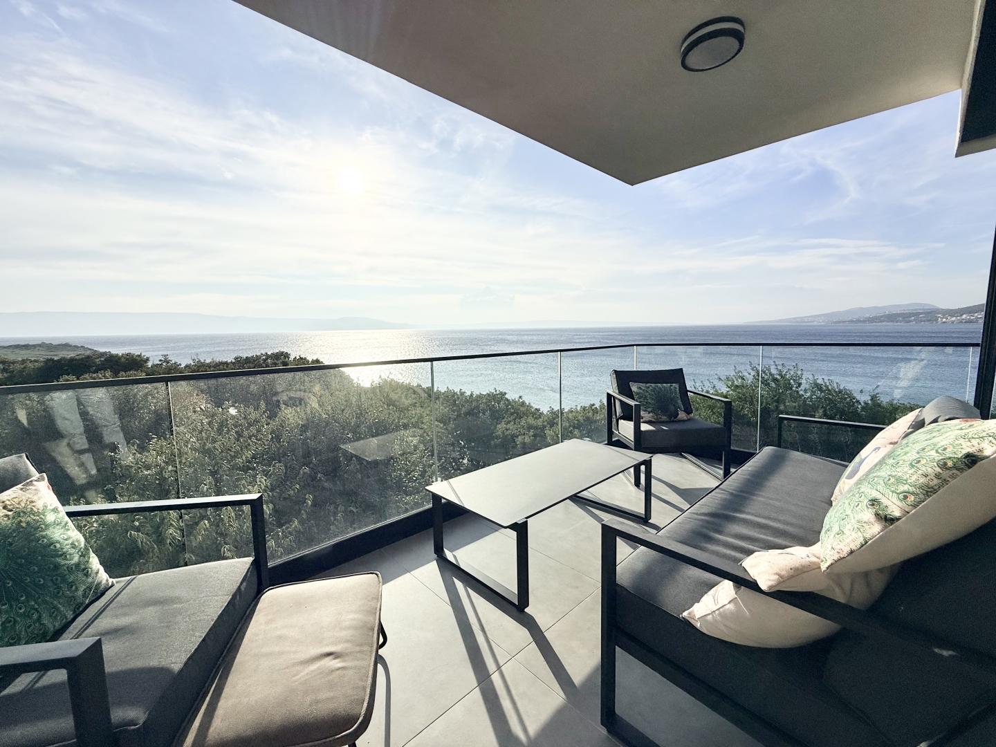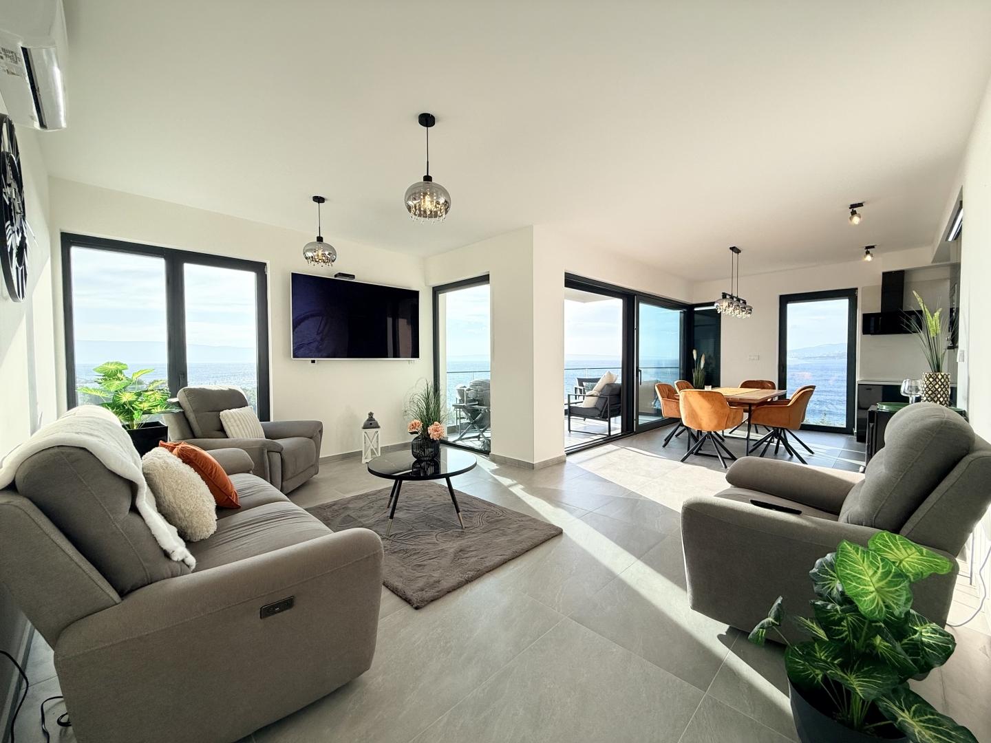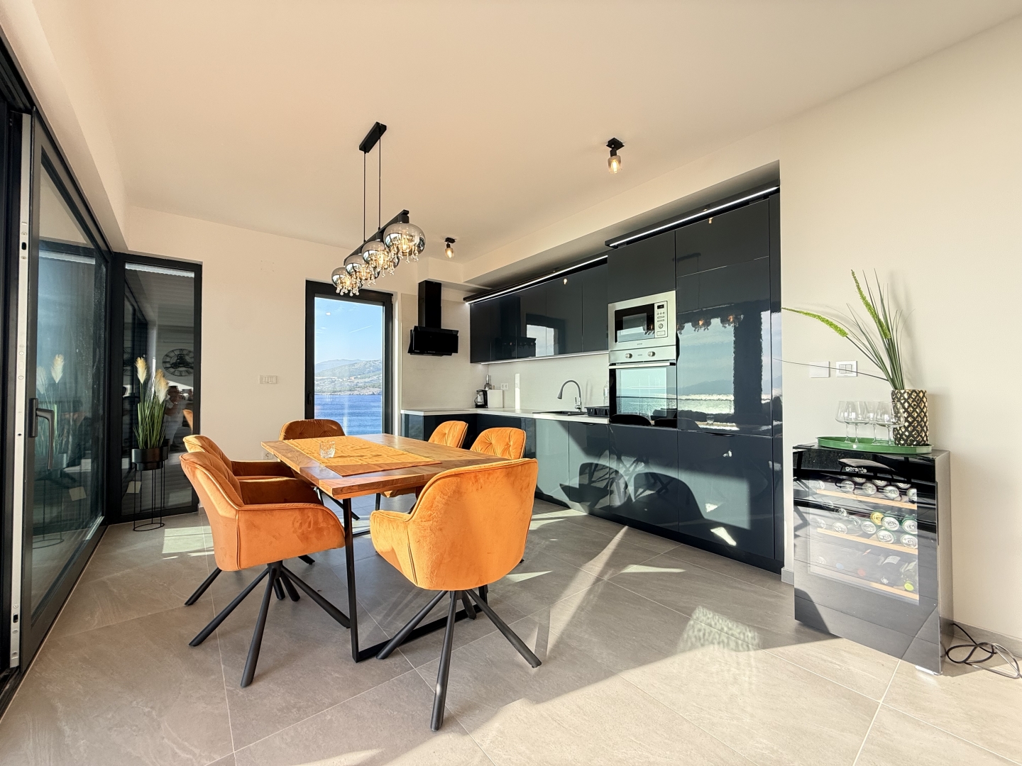Opis (Engleski): Klenovica – luxury apartment first row to the sea in a new building!A rare opportunity on the Croatian coast – an exclusive apartment in Klenovica, just 10 meters from the sea, offering breathtaking panoramic sea views. This luxury property is part of a newly built residence (2023) with only a few units, ensuring privacy, exclusivity, and the highest level of comfort.The apartment is located on the second and top floor, occupying the most desirable position in the building. With a total living area of 90.79 m², the layout includes a spacious open-plan kitchen, dining room, and living area of 36.54 m², a hallway of 6.43 m², two comfortable bedrooms of 11.49 m² and 13.39 m², two modern bathrooms of 5.98 m² and 5.53 m², a storage room, and a covered terrace of 10.33 m² with unobstructed panoramic views of the Adriatic.Designed with attention to detail, the apartment is fully furnished with custom-made furniture and equipped with premium materials....