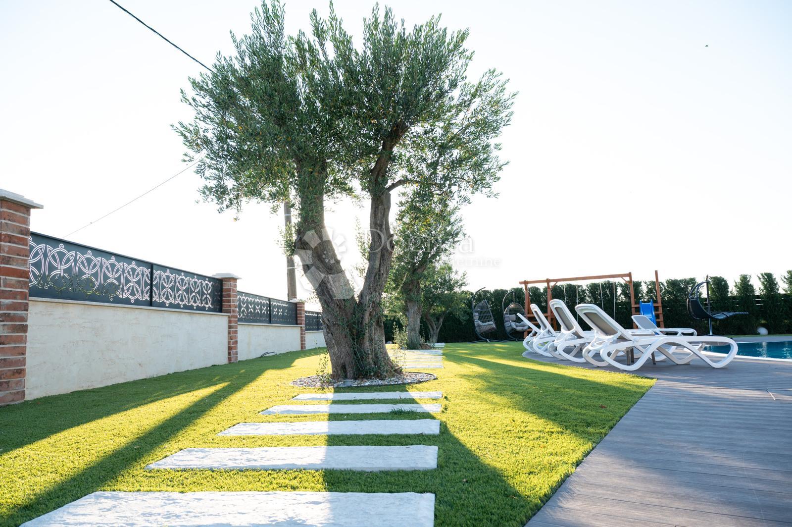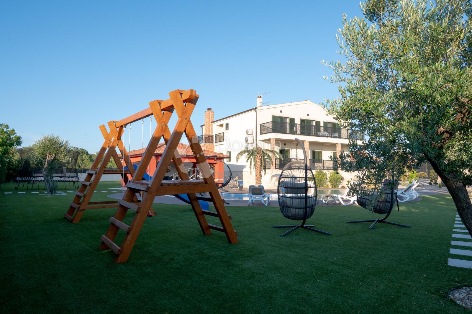 Kuća se prostire na dvije etaže i nudi sedam prostranih spavaćih soba, što omogućuje udoban smještaj velike obitelji ili brojnog društva. Interijer je oblikovan za maksimalnu funkcionalnost, a uz ugodne dnevne prostore tu su i elementi koji podižu standard življenja – podno grijanje i klimatizacija osiguravaju savršenu temperaturu u svako doba godine. Posebnu atmosferu doma daje i tradicionalna konoba, idealna za druženja i intimne večeri....