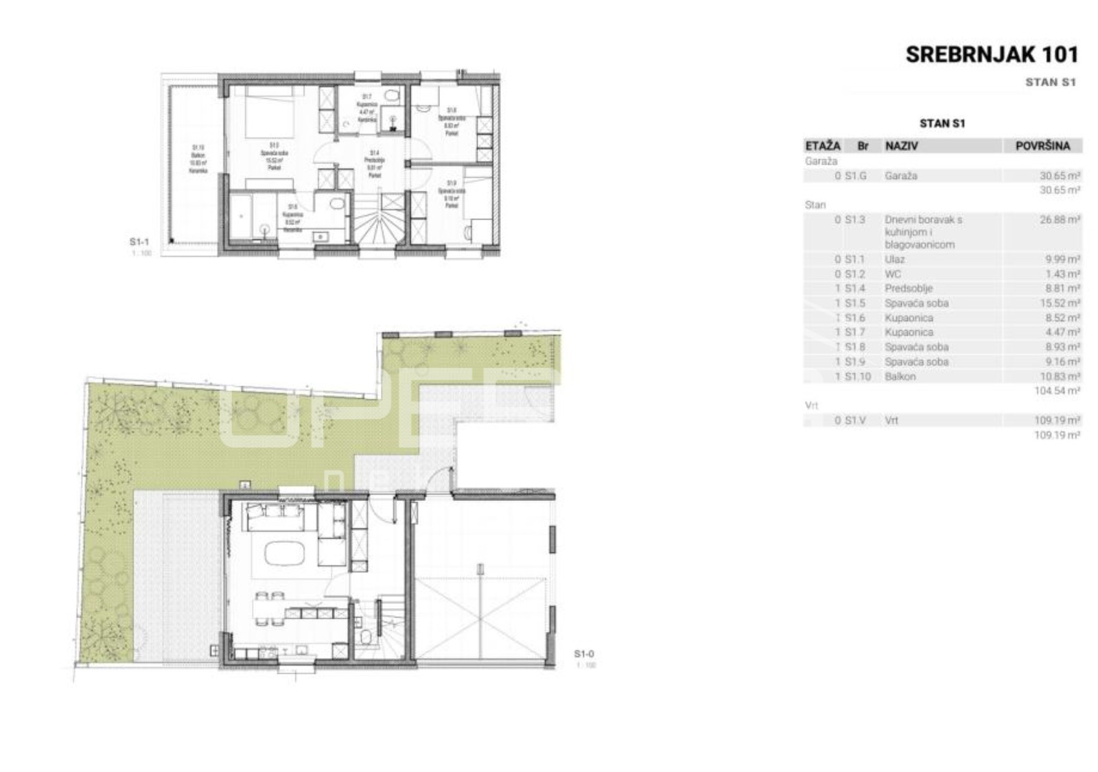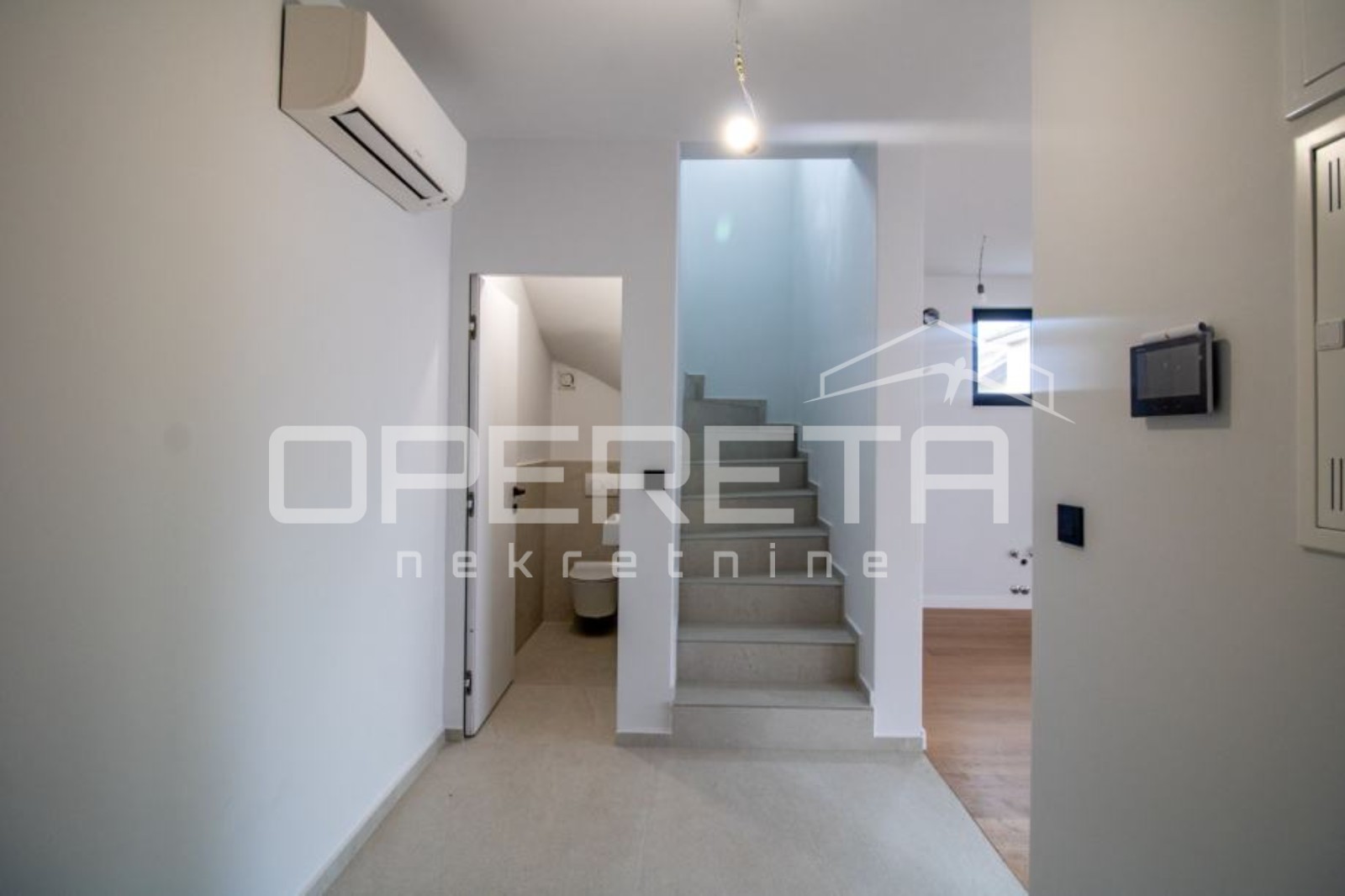 Opis: Prodaja, Stan, Novogradnja, Srebrnjak, 125m2, 4s.Vrhunska luksuzna zgrada s ukupno 4 stana.Luksuzan dvoetažan četverosoban stan zatvorene površine 105m2, vrt 109m2, garaža 30,65 m2. Ukupno obračunski NKP 125m2. Sastoji se od predsoblja, dnevnog boravka s kuhinjom i blagovaonicom otvorenog tlocrta s izlazom na terasu i vrt, gostinjskog wc-a na gornjoj etaži, predsoblja, master sobe s garderobom, kupaonicom i izlazom na balkon, dvije spavaće sobe i kupaonice.Stan odlikuje najviši stupanj opreme i najsuvremenije tehnologije u pogledu instalacija i upravljanja istima, dok energetska učinkovitost zadovoljava najviše standarde. Visoko kvalitetna oprema: rekuperator zraka, dizalice topline (Daikin), alumini stolarija (Schuco), troslojno staklo, topla veza lift garaža stan, protuprovalna ulazna vrata, hrastov parket I klase, vrhunska keramika i sanitarna oprema.Useljenje ljeto 2025. godine.Sve ostale informacije na upit.