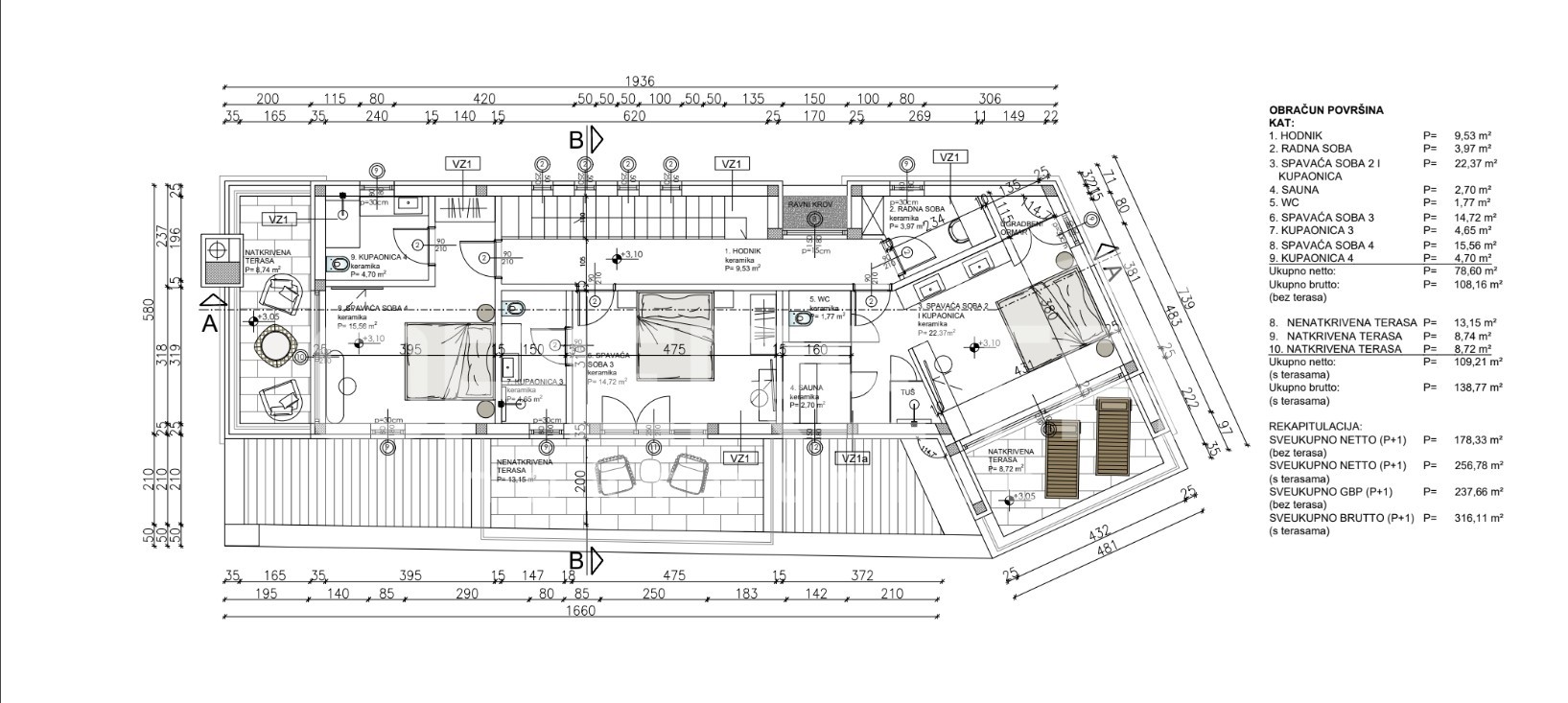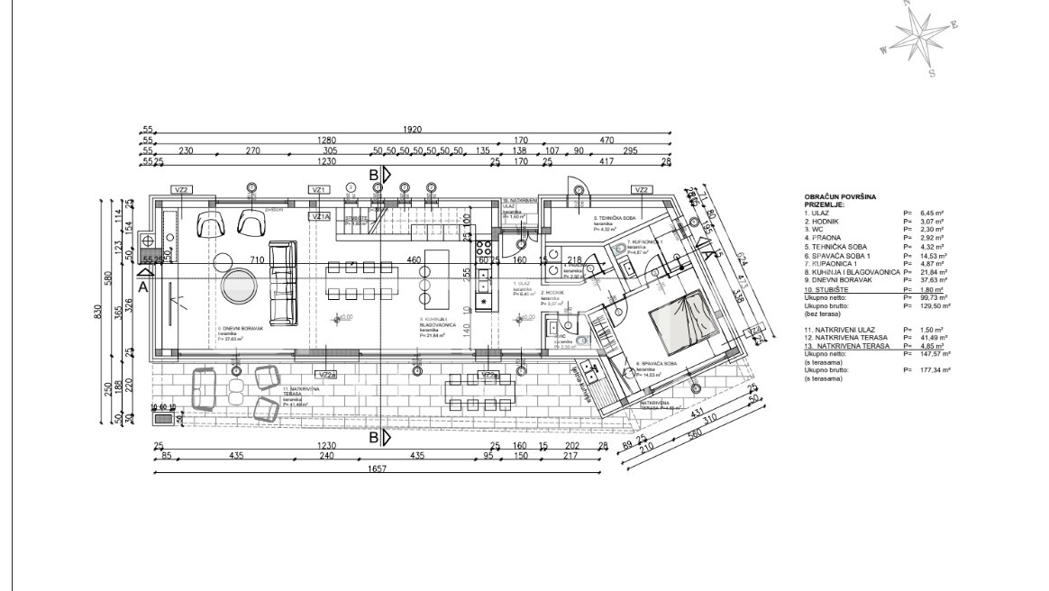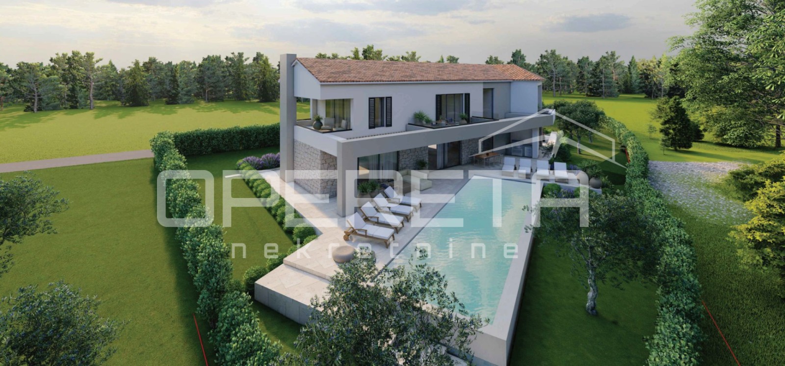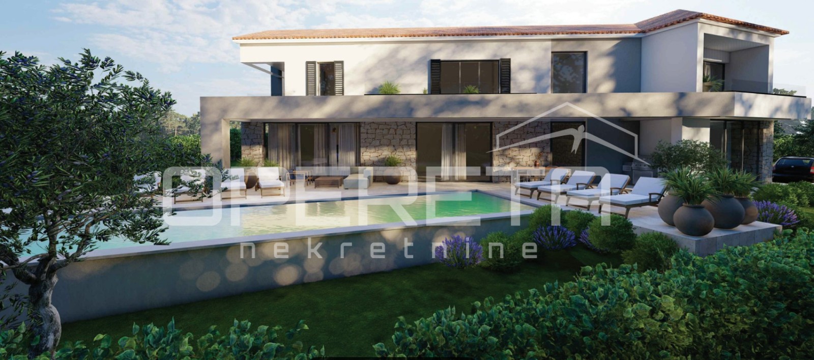 Opis: Istra, Kaštelir – moderna vila s pogledom na moreiz naše ponude izdvajamo modernu samostojeću vilu s bazenom i pogledom na more, smještena na uređenoj i ograđenoj parceli površine 1.026 m².Vila se prostire na dvije etaže prizemlje i kat s ukupnom stambenom površinom od 256,78 m². U prizemlju se nalaze dnevni boravak, kuhinja s blagovaonicom, jedna spavaća soba s vlastitom kupaonicom, dodatni toalet, praonica, hodnik i tehnička prostorija. Iz dnevnog boravka, kuhinje i hodnika omogućeno je izlazak na natkrivenu terasu s ljetnom kuhinjom.Unutarnje stubište vodi na kat gdje se nalaze tri spavaće sobe, svaka s vlastitom kupaonicom, radna soba, hodnik te dvije terase – jedna natkrivena i jedna nenatkrivena. Jedna spavaća soba ima izlaz na natkrivenu terasu, dok preostale dvije imaju pristup nenatkrivenoj terasi. Sa svih terasa pruža se pogled na okolni krajolik i more.Grijanje je osigurano putem podnog grijanja i klima uređaja. Vila je građena kvalitetnim materijalima, s pažljivo odabranim podovima i sanitarnom opremom....
