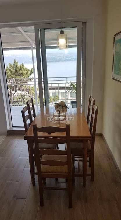 Opis: OPATIJA Ovaj dvosobni stan od 52m2 s natkrivenom terasom od 15m2 nalazi se samo 150m od mora i 10 minuta hoda, šetnicom uz more, do centra Opatije (Slatina). S terase i iz svih ostalih prostorija, uključujući i kuhinju pruža se veličanstven pogled na cijeli Kvarner. Ova novo uređena oaza iznad hotela Adriatic je savršena za poslovne ljude koji žele uživati u mirnom prostoru okruženom mediteranskom šumom.