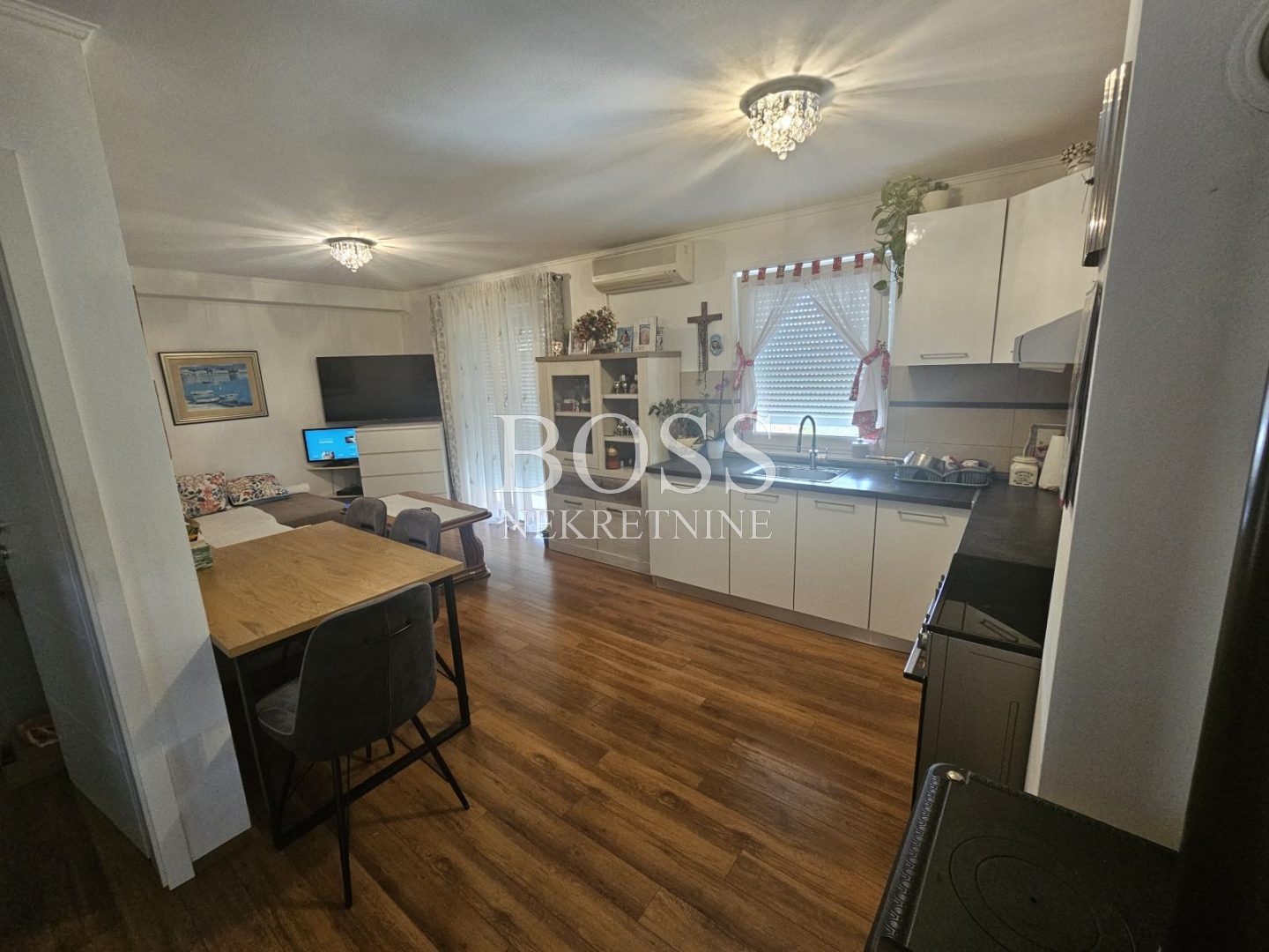 Opis: Viškovo, u ponudi imamo stan na prvom katu u odličnoj zgradi. Sastoji se od ulaznog hodnika, kupaone, spavaće sobe, kuhinje, dnevnog boravka i balkona, te natkrivenog balkona. Stanu pripada ulazni podest u razini prizemlja, stubište i spremište razine prvog kata. Grijanje na klima uređaj, drva ili pelete. Zgrada ima termo izolaciju i demit fasadu, građena je 2015. godine. Stan se prodaje namješten (osim kutne garniture i televizije). Uredna vlasnička dokumentacija, uporabna dozvola. Prilika! Boss, kontakt: 091/379-1010 Dragan