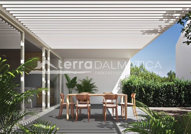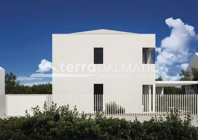 Opis: Na prodaju je moderna dvojna kuća u Tisnom, ukupne stambene površine 160 m², projektirana s naglaskom na funkcionalnost, estetiku i skladno uklapanje u okolni prostor. Kuća je trenutno u fazi izgradnje, te njen završetak i planirano useljenje je na jesen 2026. Kuća se sastoji od prizemlja i prvog kata. Na prizemlju se nalaze uredska soba, hodnik, kupaonica, kuhinja povezana s dnevnim boravkom i blagovaonicom, spremište, natkrivena terasa površine 40 m² te uređeno zelenilo od 83 m². Na prvom katu smještene su tri spavaće sobe, dvije kupaonice, hodnik i spremište, a cjelokupna organizacija prostora pažljivo je osmišljena kako bi se postigla maksimalna udobnost i estetika. Kuća također raspolaže s dva parkirna mjesta, što dodatno povećava praktičnost i vrijednost nekretnine. Ova nekretnina nudi suvremeni način stanovanja u mirnom i atraktivnom okruženju. Tisno, smješteno između kopna i otoka Murtera, poznato je po svojoj kulturnoj baštini, ugodnoj mediteranskoj atmosferi, gastronomiji i bogatom društvenom životu, a ujedno je i omiljena destinacija za ljetni odmor....