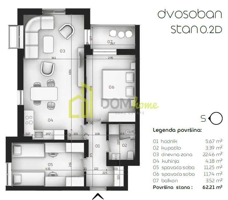 Opis: 🏠 Na prodaju dvosoban stan u izgradnji 62,21m2, u Tološima.
