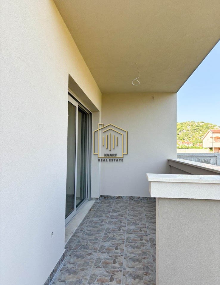 Struktura: ulazni hodnik, dnevni boravak, trpezarija i kuhinja, dvije spavaće sobe, kupatilo, toalet i terasa.
