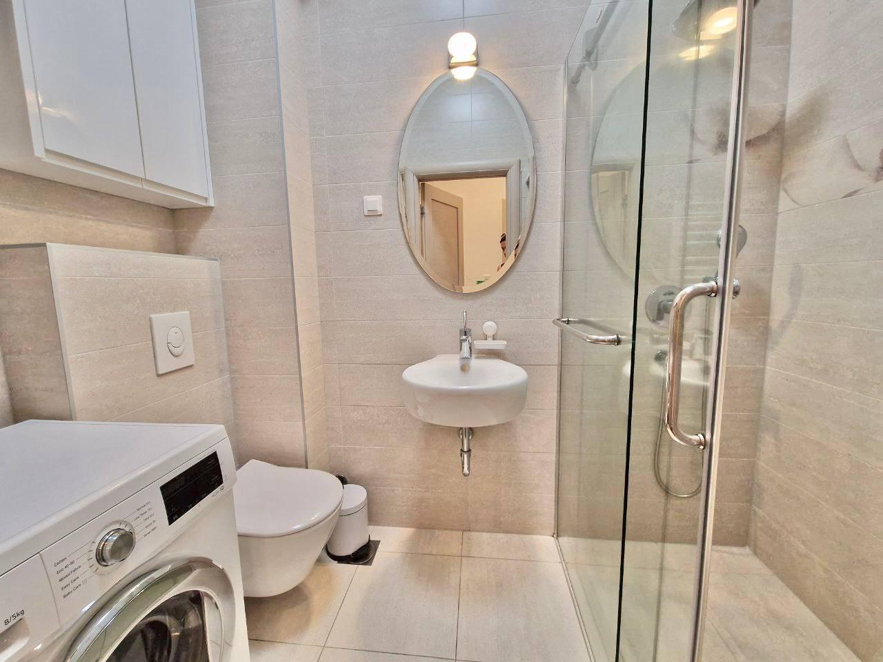 ? Stan se nalazi u novoj zgradi, na samo 10 minuta hoda ravnom ulicom od plaže i šetališta. Škola je udaljena samo 3 minuta peške.