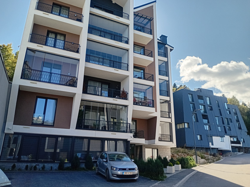 Opis: Veoma lijep apartman od 36m2 koji se nalazi u kompleksu Vukov vis, Vučko i Vučica. U potpunosti je opremljen. Odličan je za iznajmljivanje. Posjeduje svoju skijašnicu. Nalazi se blizu svih sadržaja na Bjelašnici koji postoje. Nalazi se na visokom prizemlju sa ustakljenim balkonom i pogledom na stazu, što mu daje posebnu čar. U kupatilu je grijanje kombinacija podnog i zidnih radijatora, a u ostalim prostorijama su konvektori.