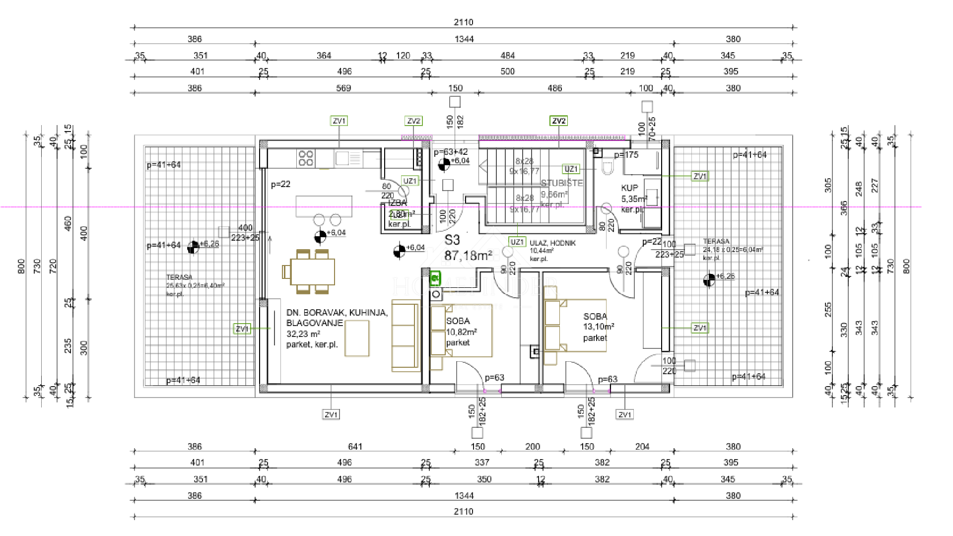 Ukupna površina stana iznosi 87,18m², a stan se nalazi u zgradi s ukupno tri stana.