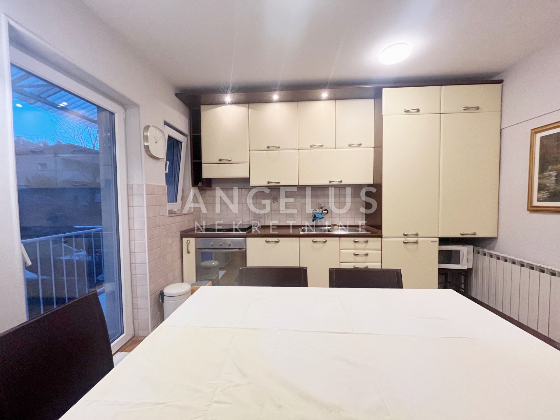 Stan se nalazi na 2. katu manje zgrade sa tri stana, a sastoji se od spavaće sobe, kupaonice, kuhinje sa blagovaonicom, dnevnog boravka i dva balkona . Potpuno je namješten, plinsko centralno grijanje, parkirno mjesto u dvorištu. Mogućnost korištenja zajedničkog vrta.