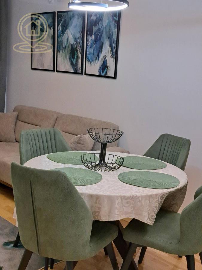 Struktura: dnevni boravak sa trpezarijom i kuhinjom, spavaća soba, moderno kupatilo i terasa. Enterijer je urađen od vrhunskih materijala, a prostor je svetao i funkcionalno raspoređen.