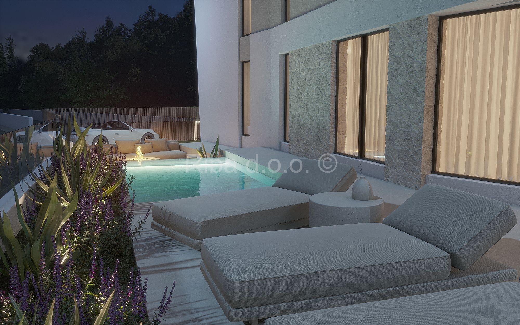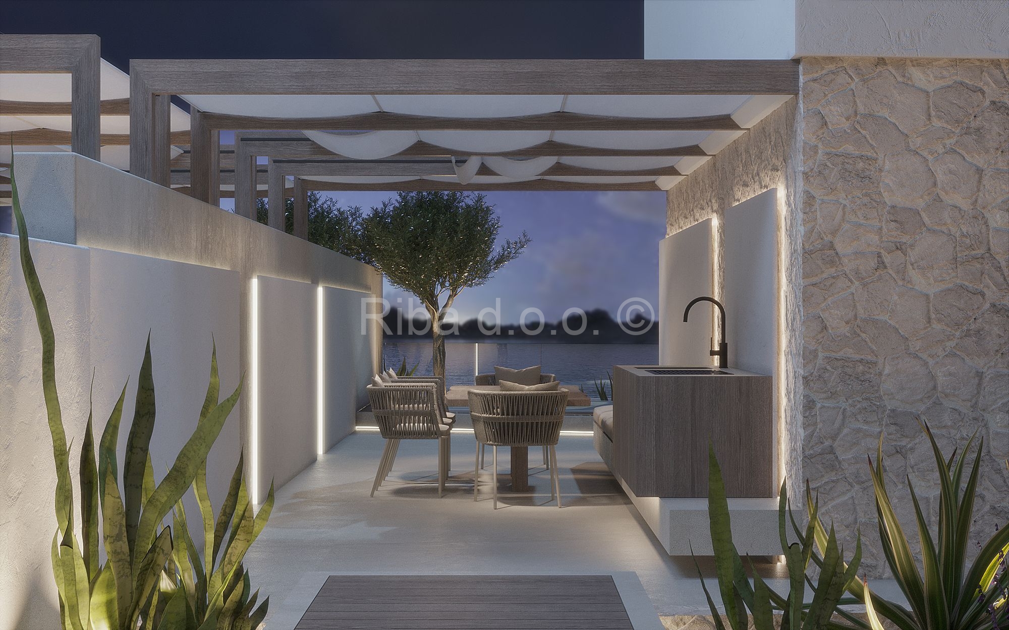 Opis: Na izvanrednoj lokaciji u Sukošanu, u prvom redu do mora, prodaje se moderna vila s bazenom i jacuzzijem, savršena za uživanje u luksuzu i miru dalmatinske obale.