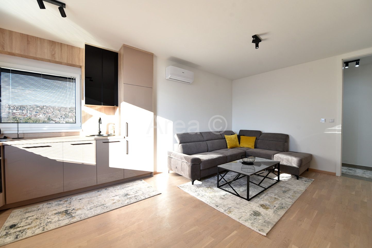 Obzirom da je stan novije gradnje, vanjska stolarija je PVC, dok je unutrašnjost uređena drvenim elementima. Podovi su obloženi parketom i keramičkim pločicama, a ulazna vrata su blindirana. Grijanje je centralno gradsko toplane sa ugrađenim kalorimetrom koji mjeri potrošnju, a posjeduje i klima uređaj.