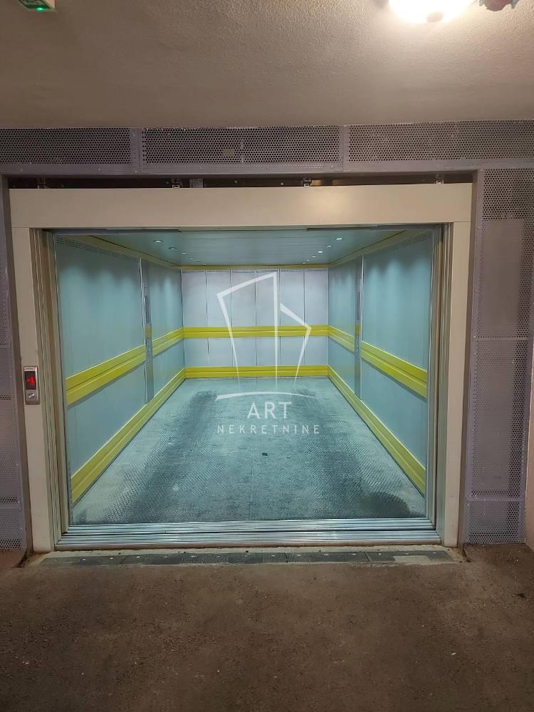 Opis: 12,5 m2 garažno mesto, klackalica,video nadzor ,daljinski upravljač, lift