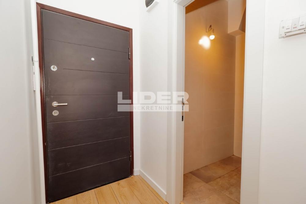 Prodaje se kompletno renoviran stan, uknjižene površine 25 m², mereno 38 m². Nalazi se na 5. spratu vojne zgrade od šest spratova, sa liftom.
