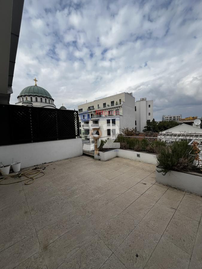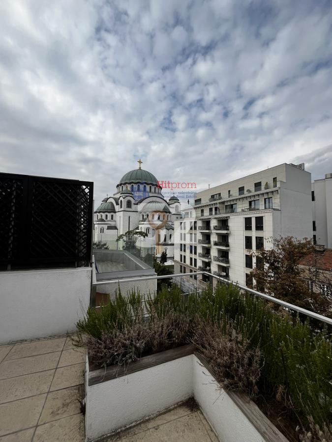 Stan poseduje dve terase, pri čemu je terasa na drugom spratu prostrana i pruža otvoren pogled ka Hramu Svetog Save.